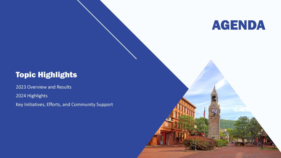 AGENDA Topic Highlights 2023 Overview and Results 2024 Highlights Key Initiatives, Efforts, and Community Support