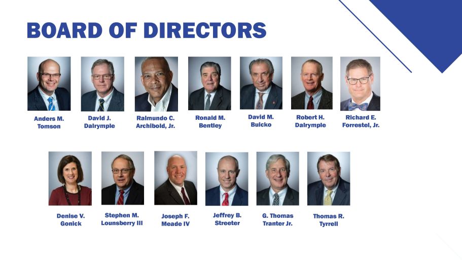 BOARD OF DIRECTORS David J. Dalrymple Ronald M. Bentley Richard E. Forrestel, Jr. Raimundo C. Archibold, Jr. David M. Buicko Robert H. Dalrymple Anders M. Tomson Stephen M. Lounsberry III Denise V. Gonick G. Thomas Tranter Jr. Jeffrey B. Streeter Thomas R. Tyrrell Joseph F. Meade IV