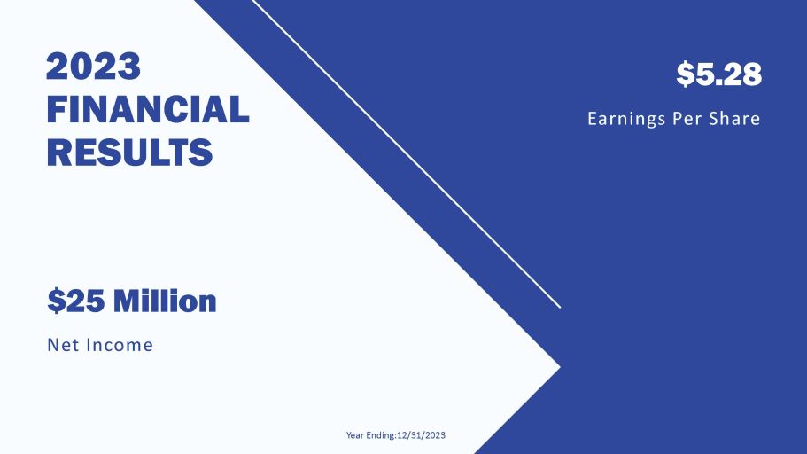 $25 Million Net Income $5.28 Earnings Per Share 2023 FINANCIAL RESULTS Year Ending:12/31/2023