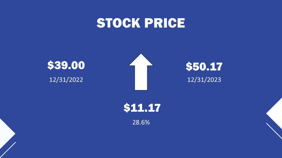 STOCK PRICE $39.00 12/31/2022 $11.17 28.6% $50.17 12/31/2023