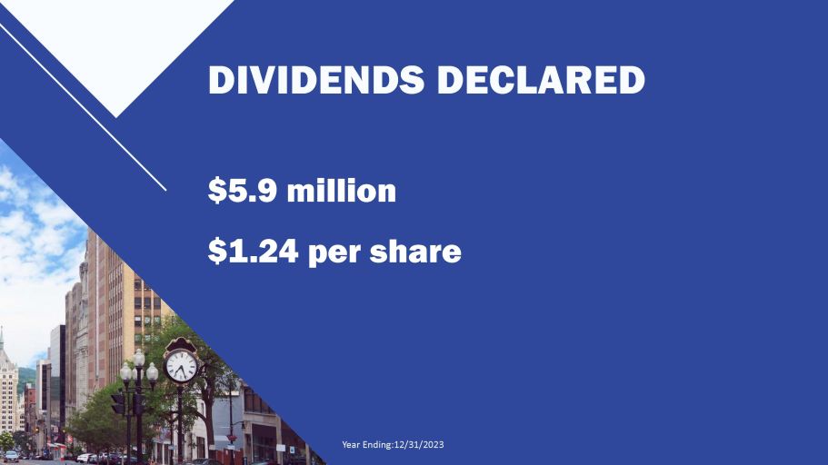 DIVIDENDS DECLARED Year Ending:12/31/2023 $5.9 million $1.24 per share