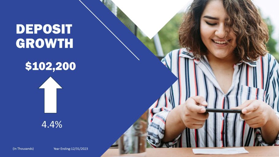 DEPOSIT GROWTH $102,200 4.4% Year Ending:12/31/2023 (In Thousands)