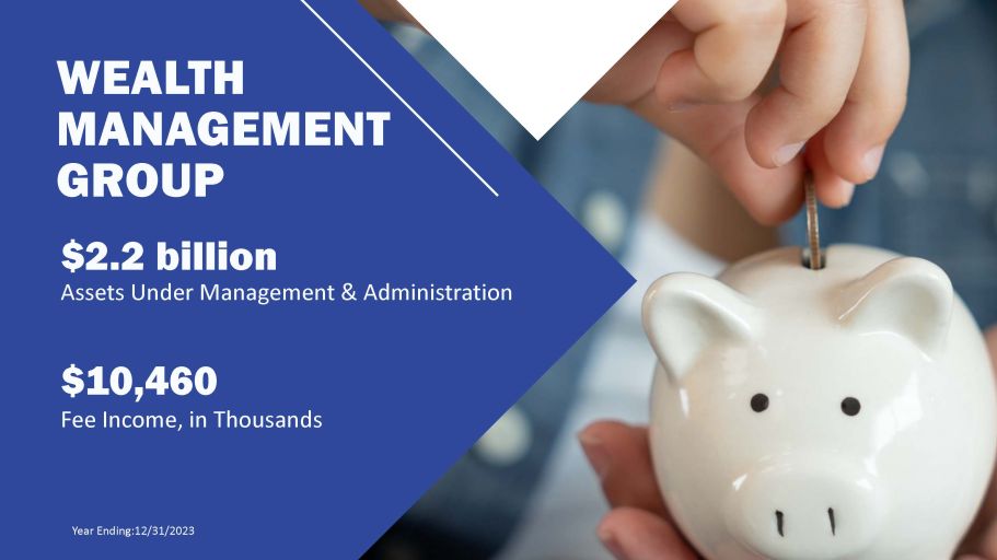 WEALTH MANAGEMENT GROUP $2.2 billion Assets Under Management & Administration $10,460 Fee Income, in Thousands Year Ending:12/31/2023