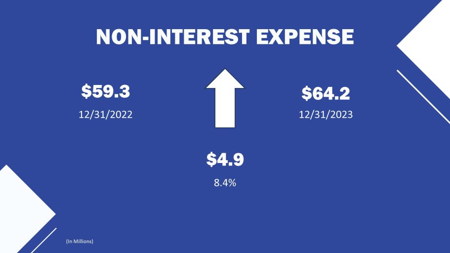 NON - INTEREST EXPENSE $59.3 12/31/2022 $4.9 8.4% $64.2 12/31/2023 (In Millions)
