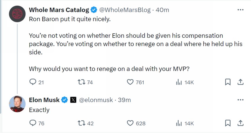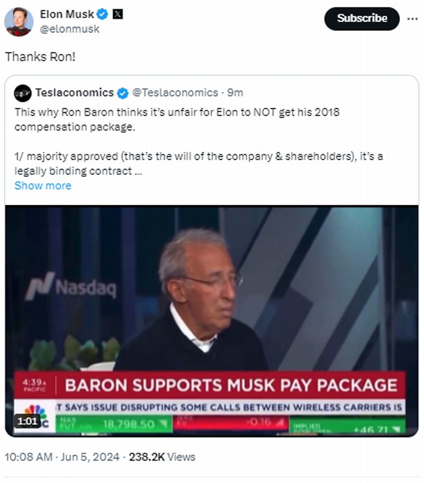 On June 3, 2024, Tesla, Inc. (“Tesla”) posted the following communications.