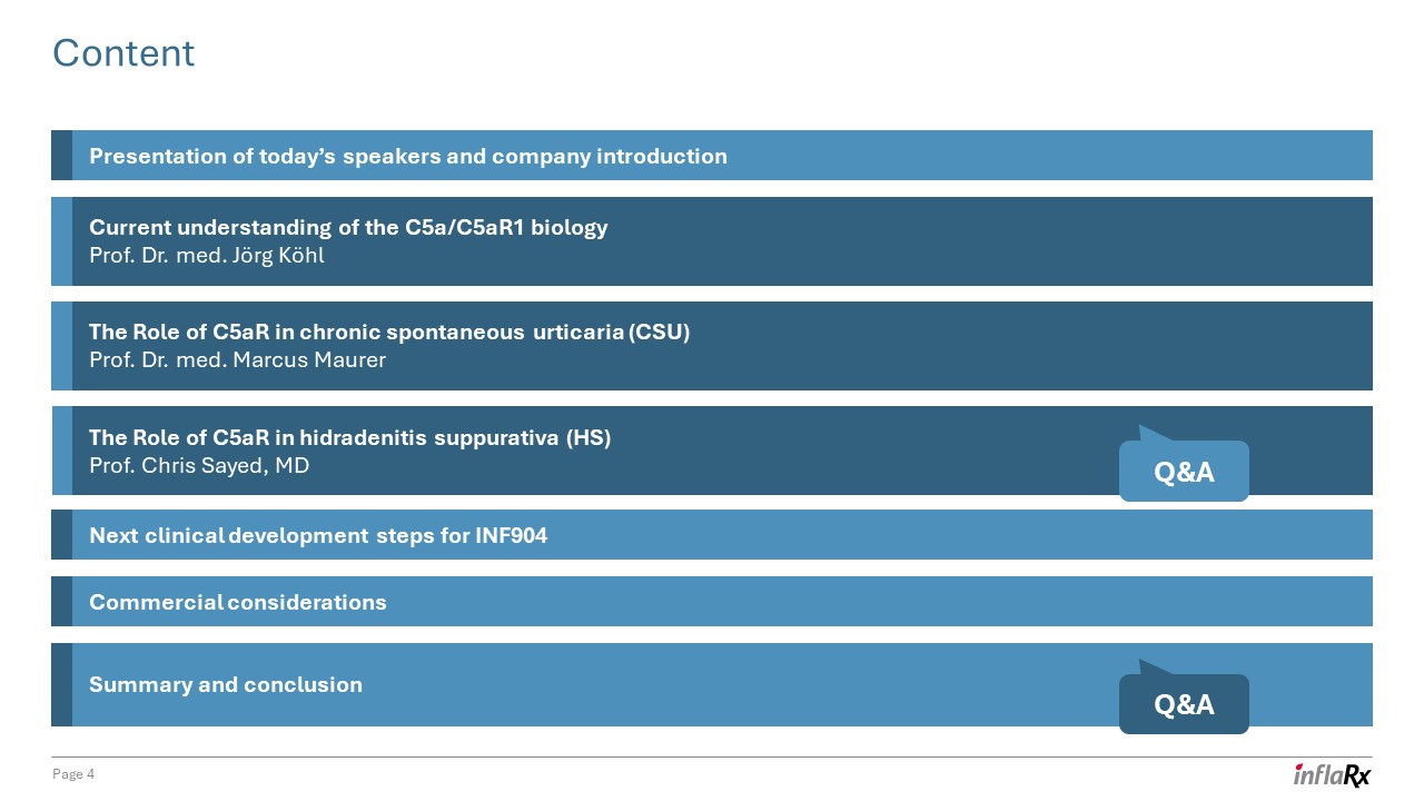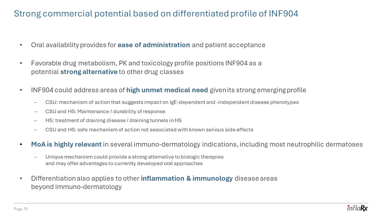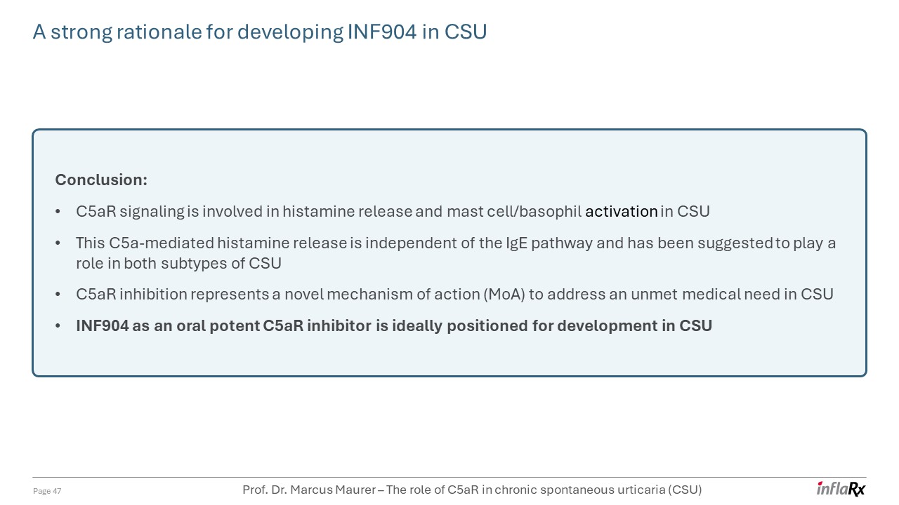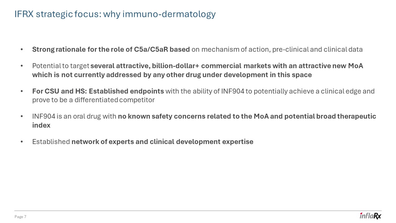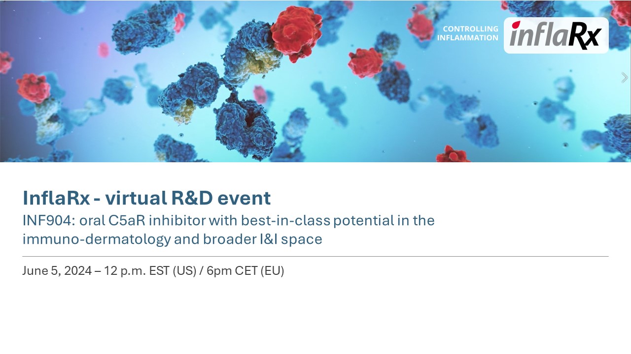 immuno-dermatology where the Company provided details and developments on its oral C5aR inhibitor INF904.