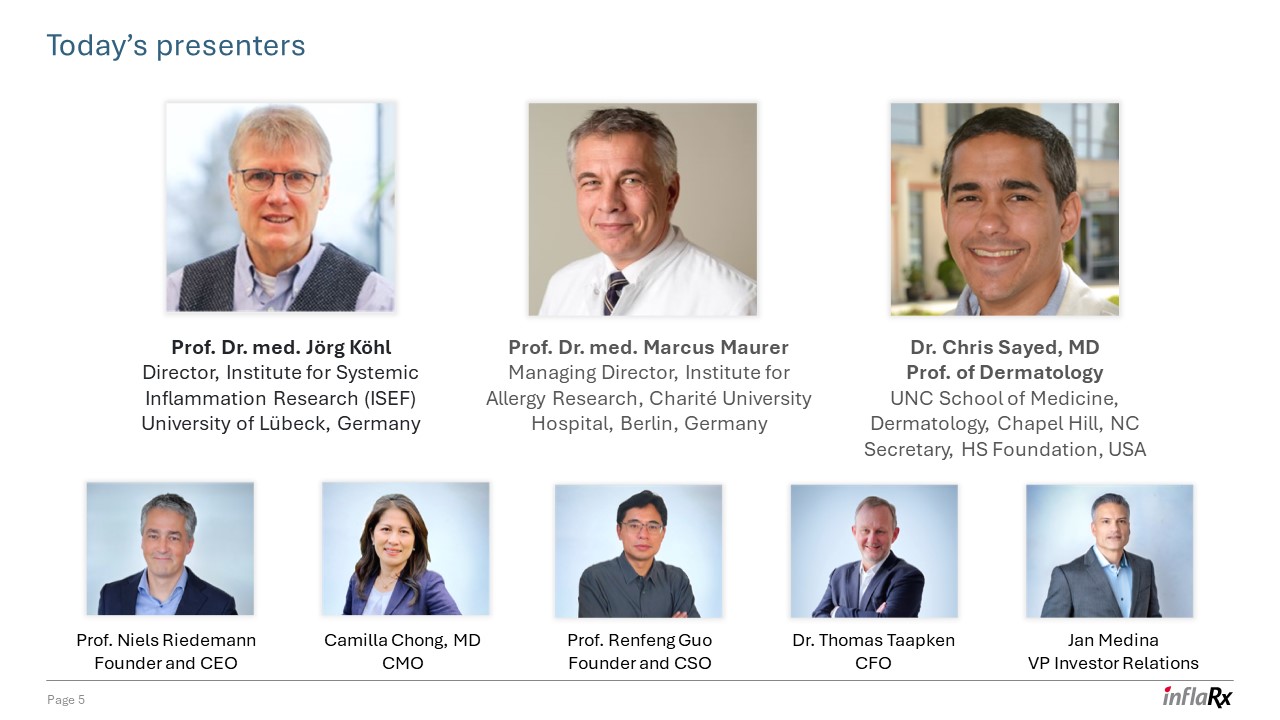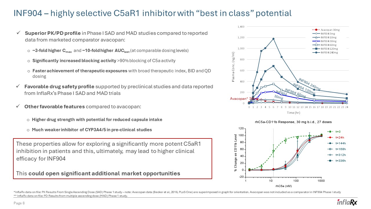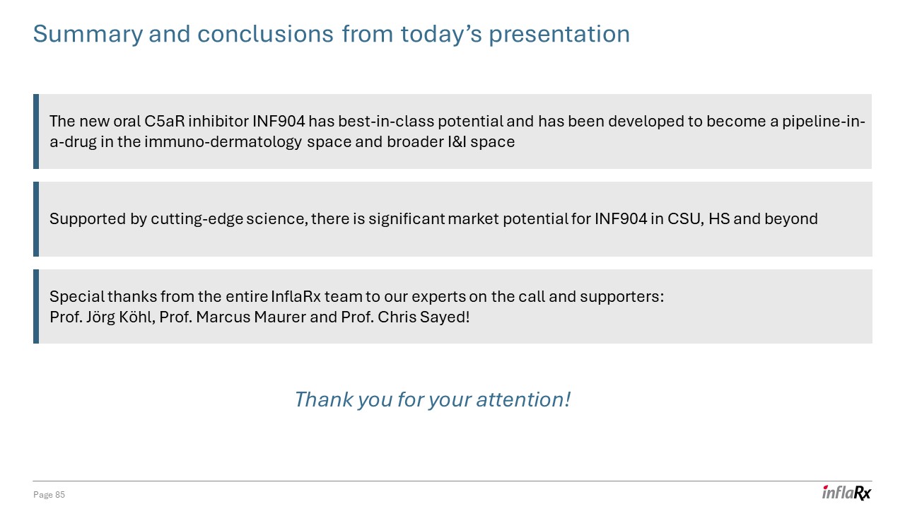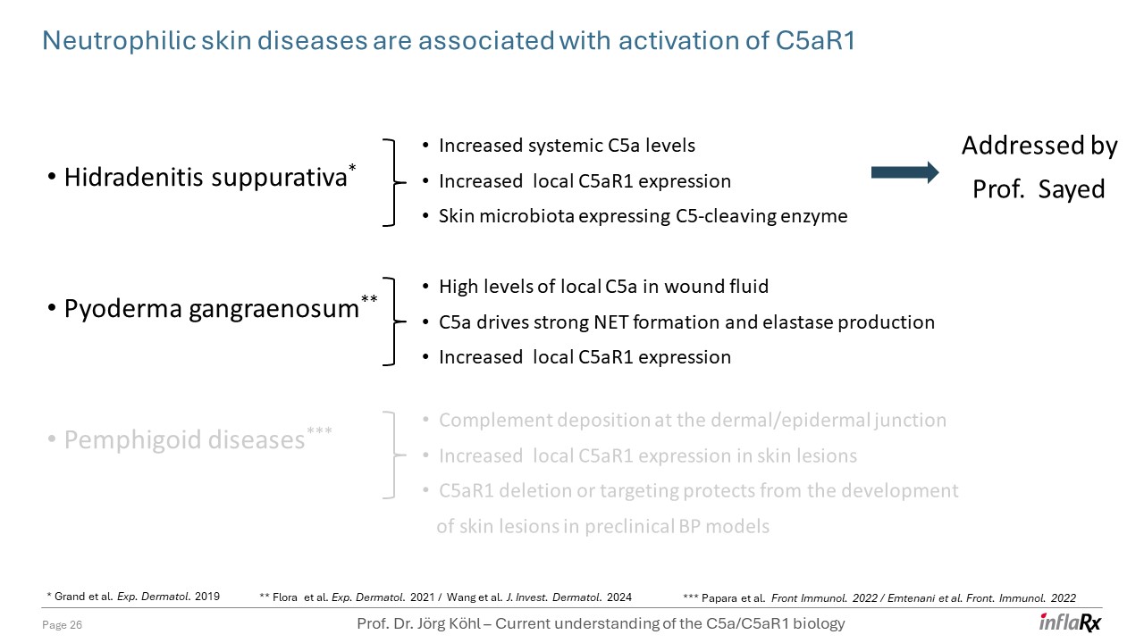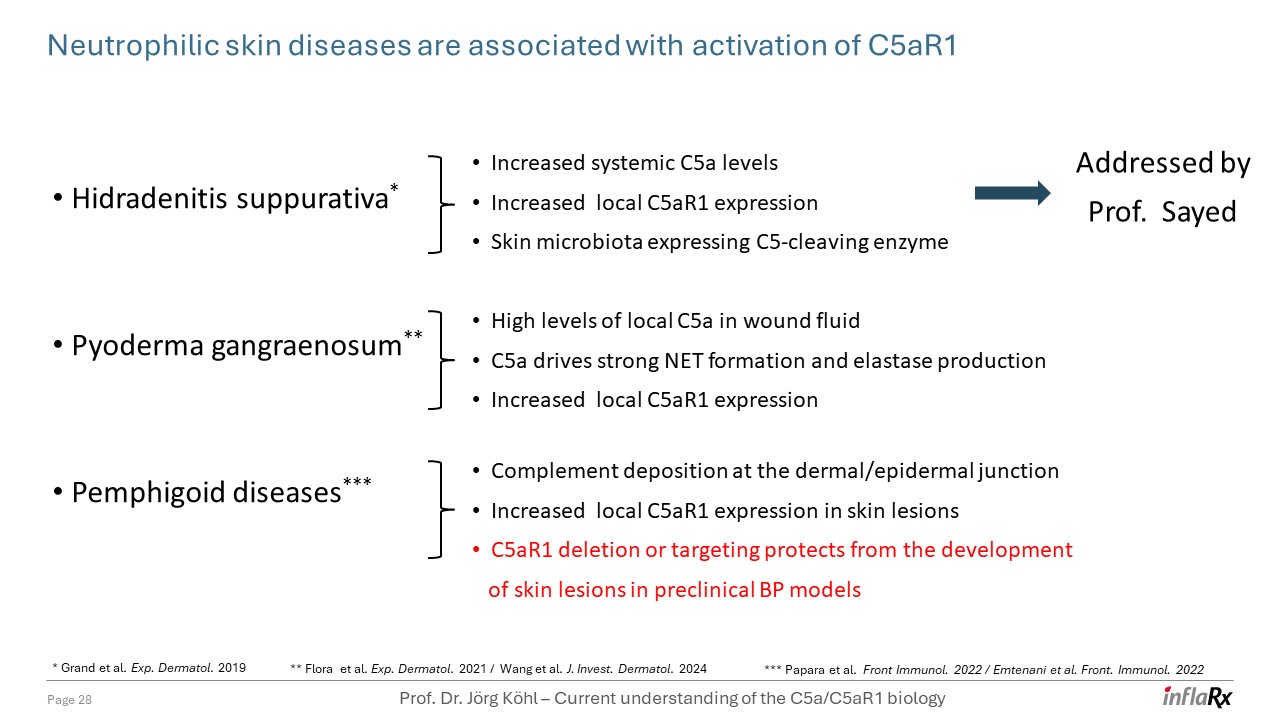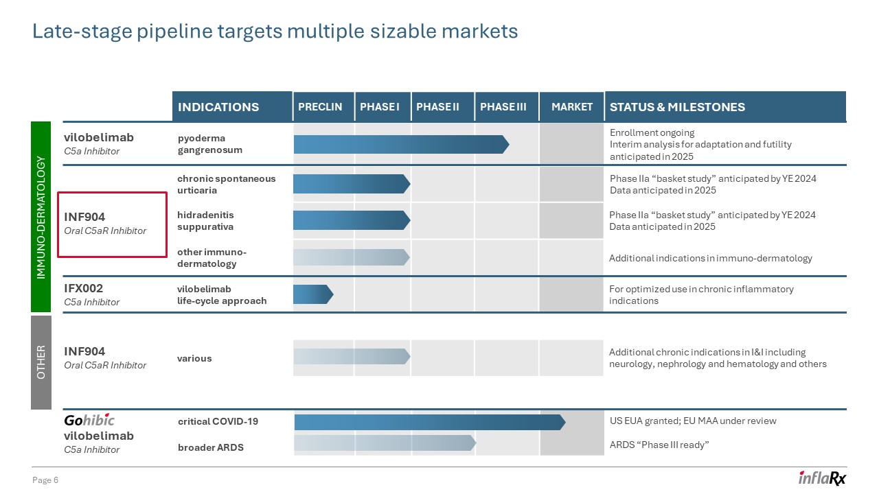 immuno-dermatology where the Company provided details and developments on its oral C5aR inhibitor INF904.