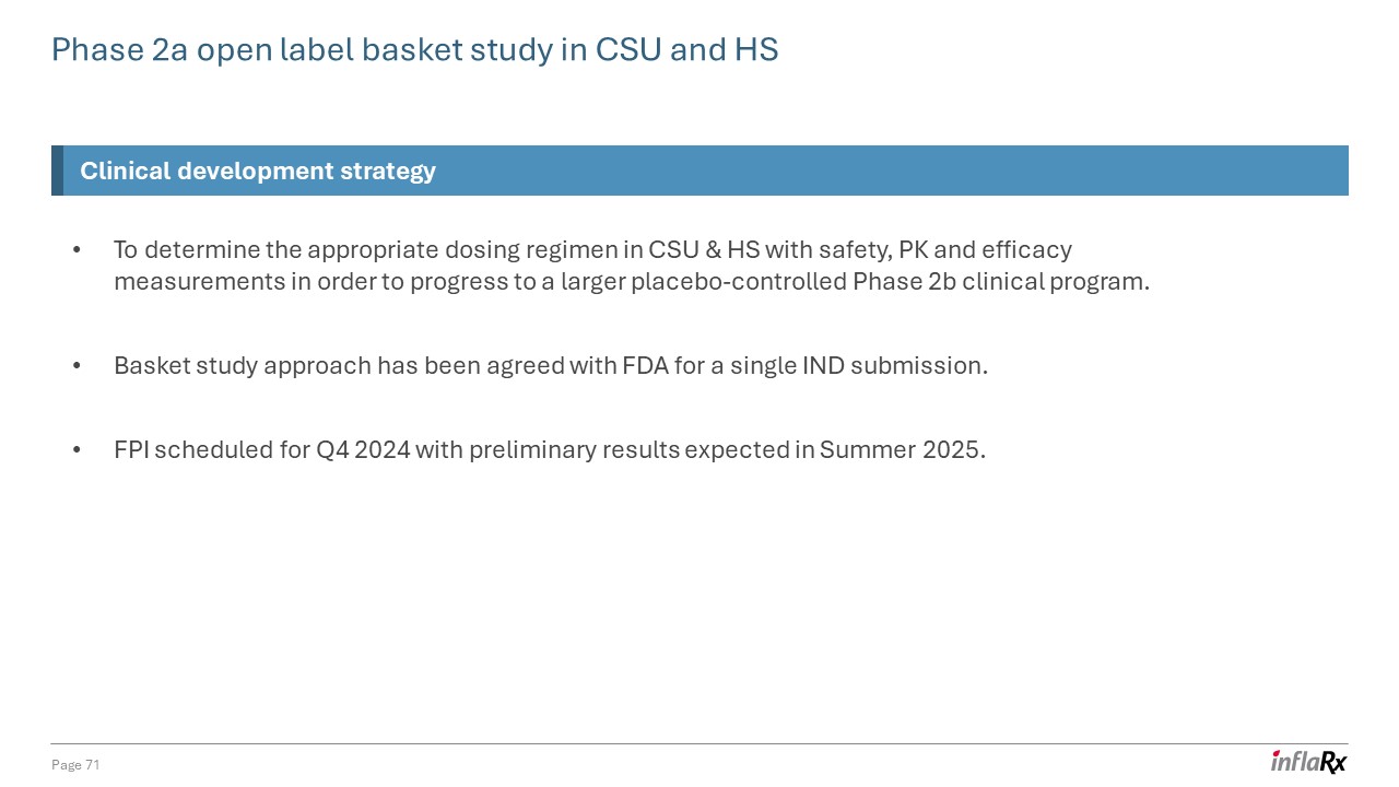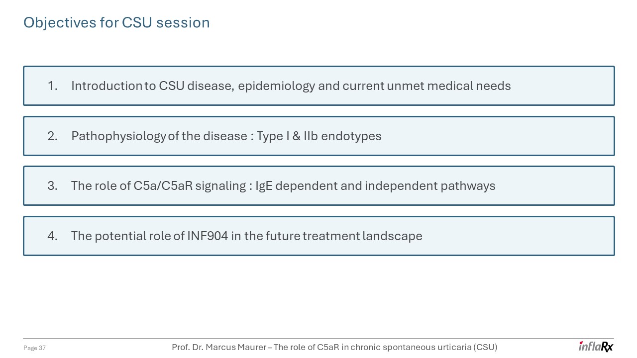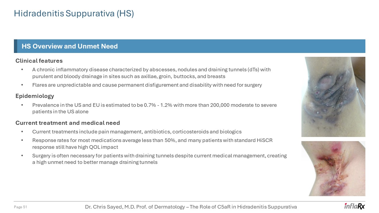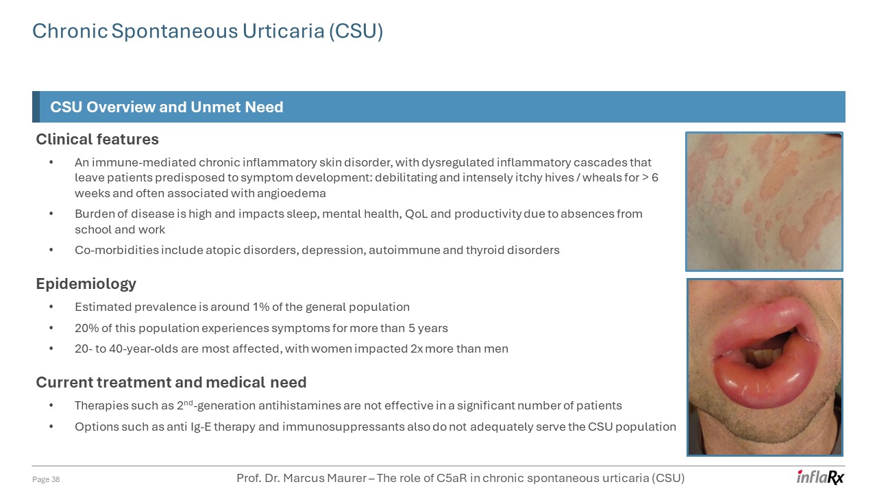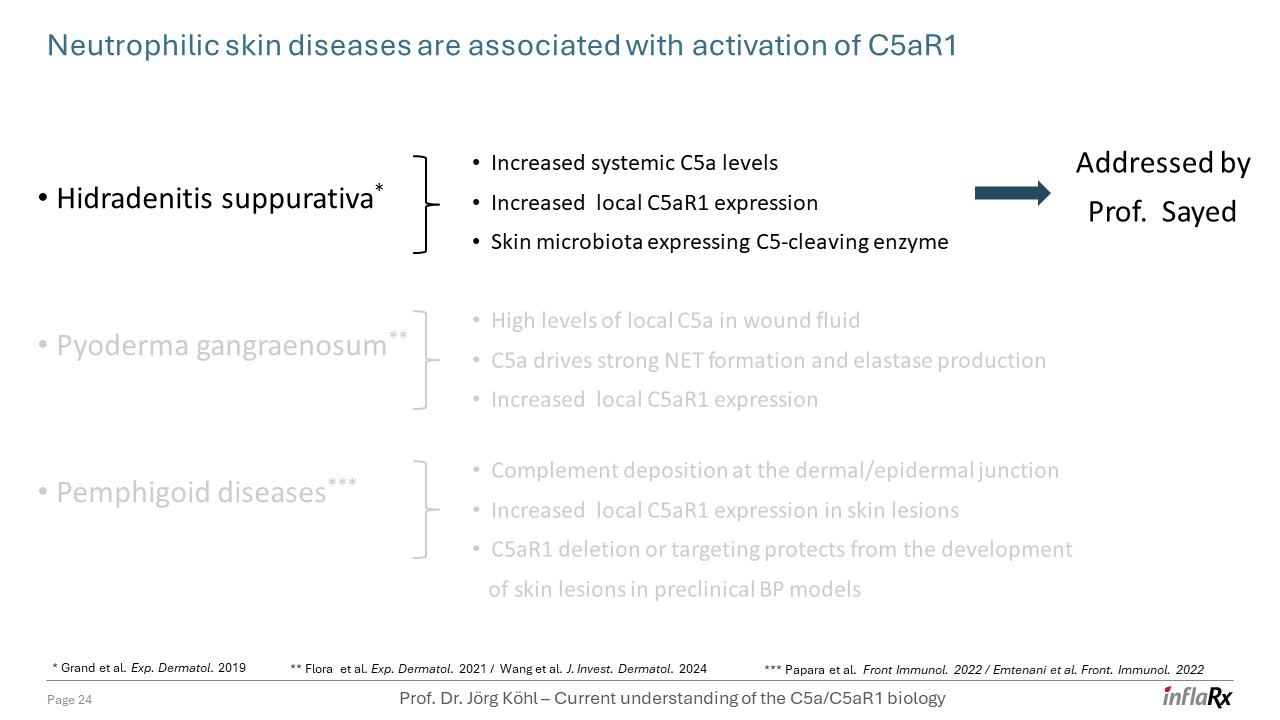 immuno-dermatology where the Company provided details and developments on its oral C5aR inhibitor INF904.