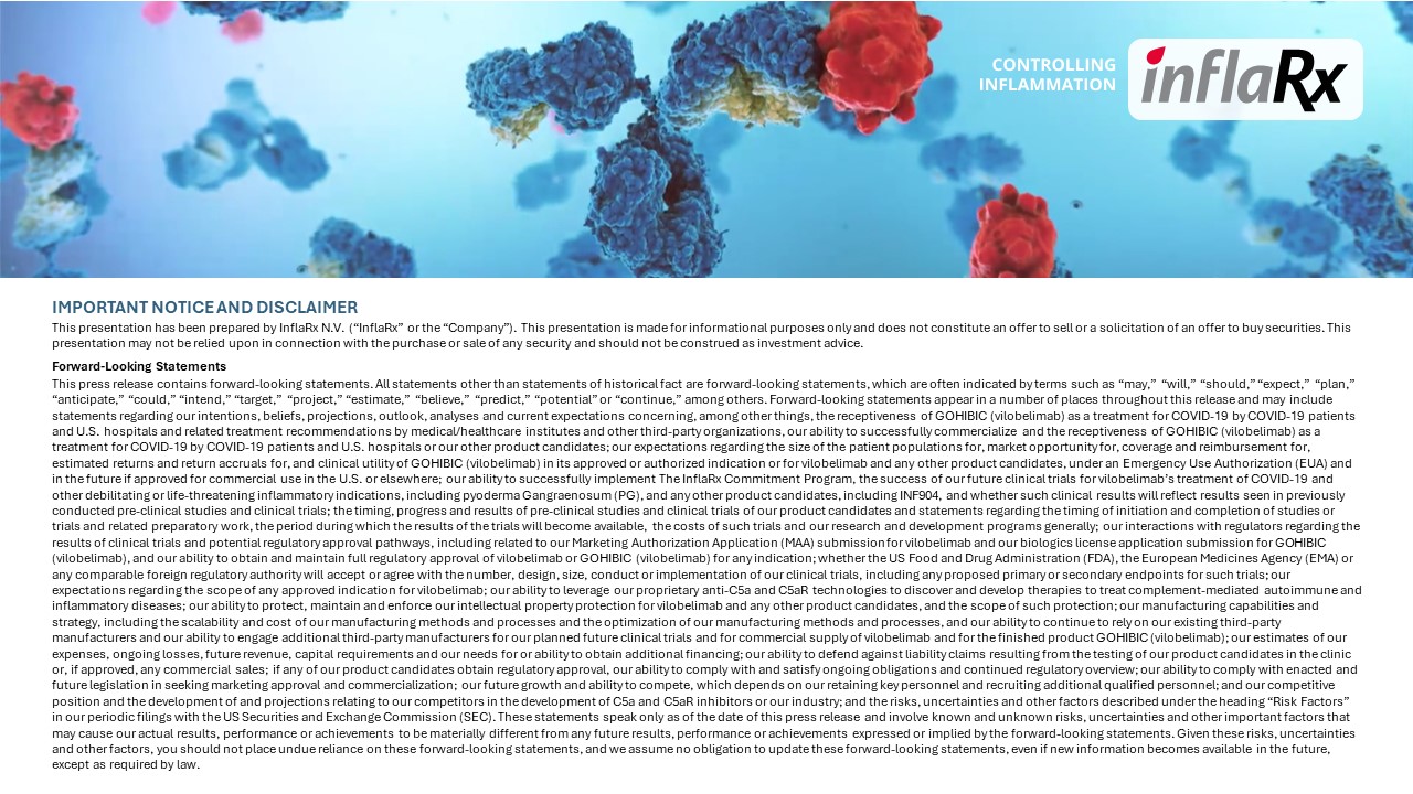 “InflaRx Hosts R&D Event Highlighting the Promise of INF904.” In connection with such announcement, on June 5, 2024, the Company hosted a virtual R&D event and presented its corporate presentation on