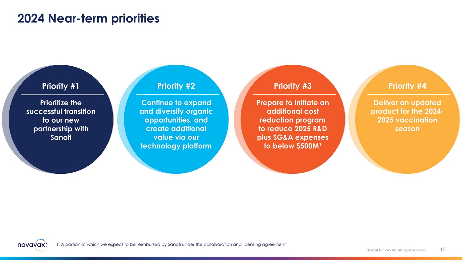 Near - term Priorities SECTION 12 © 2024 NOVAVAX. All rights reserved.