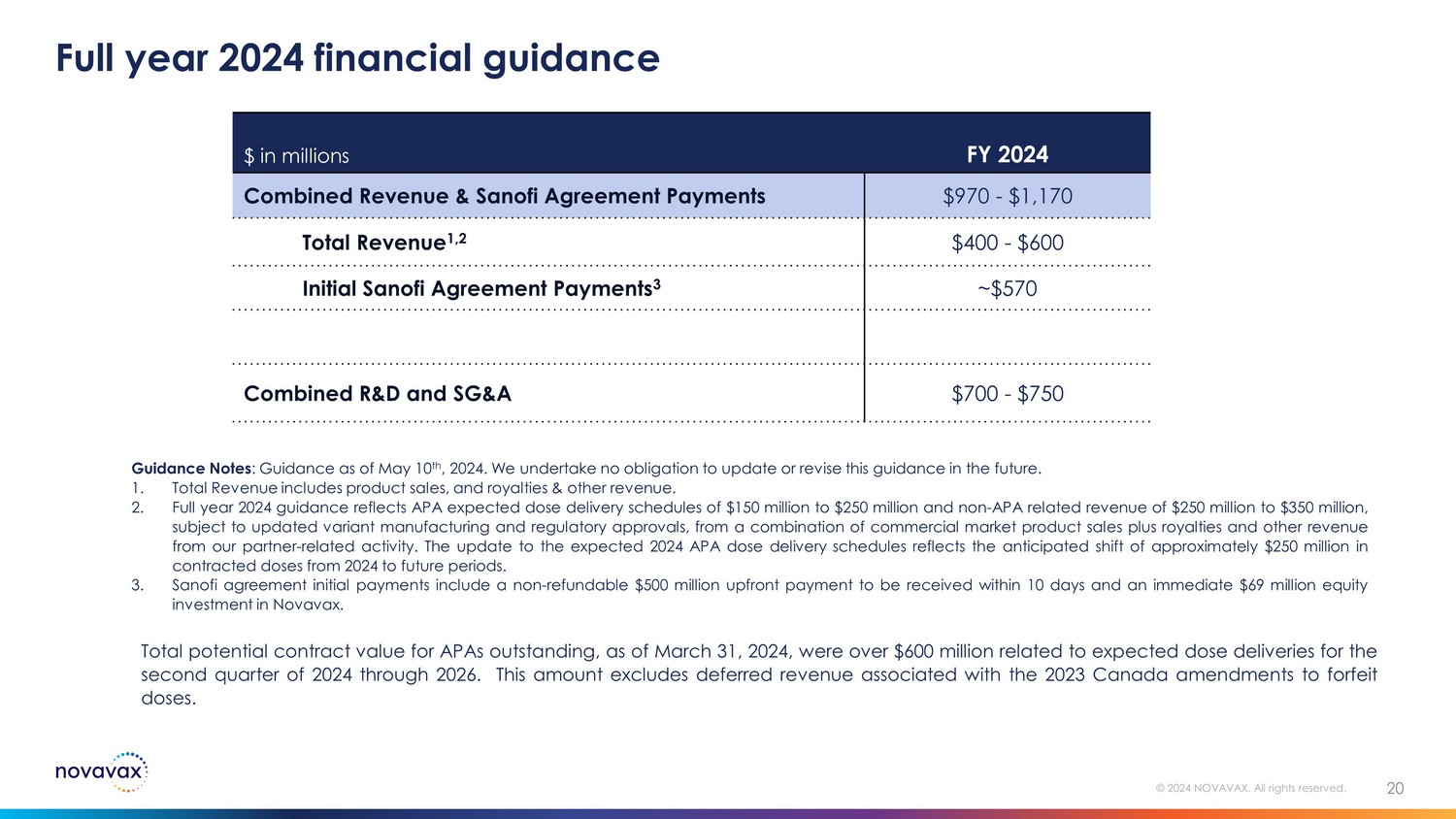 Financial Guidance and Corporate Milestones SECTION 19 © 2024 NOVAVAX. All rights reserved.