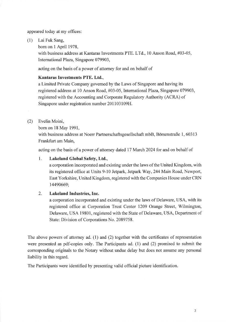 | LAKELAND INDUSTRIES, INC. (Registrant) |