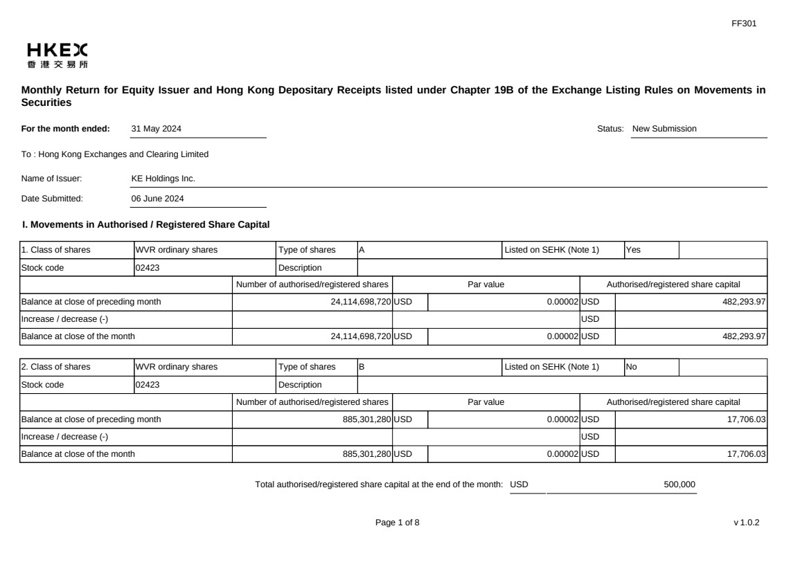 | 99.1 | Monthly Return for Equity Issuer on Movements in Securities |