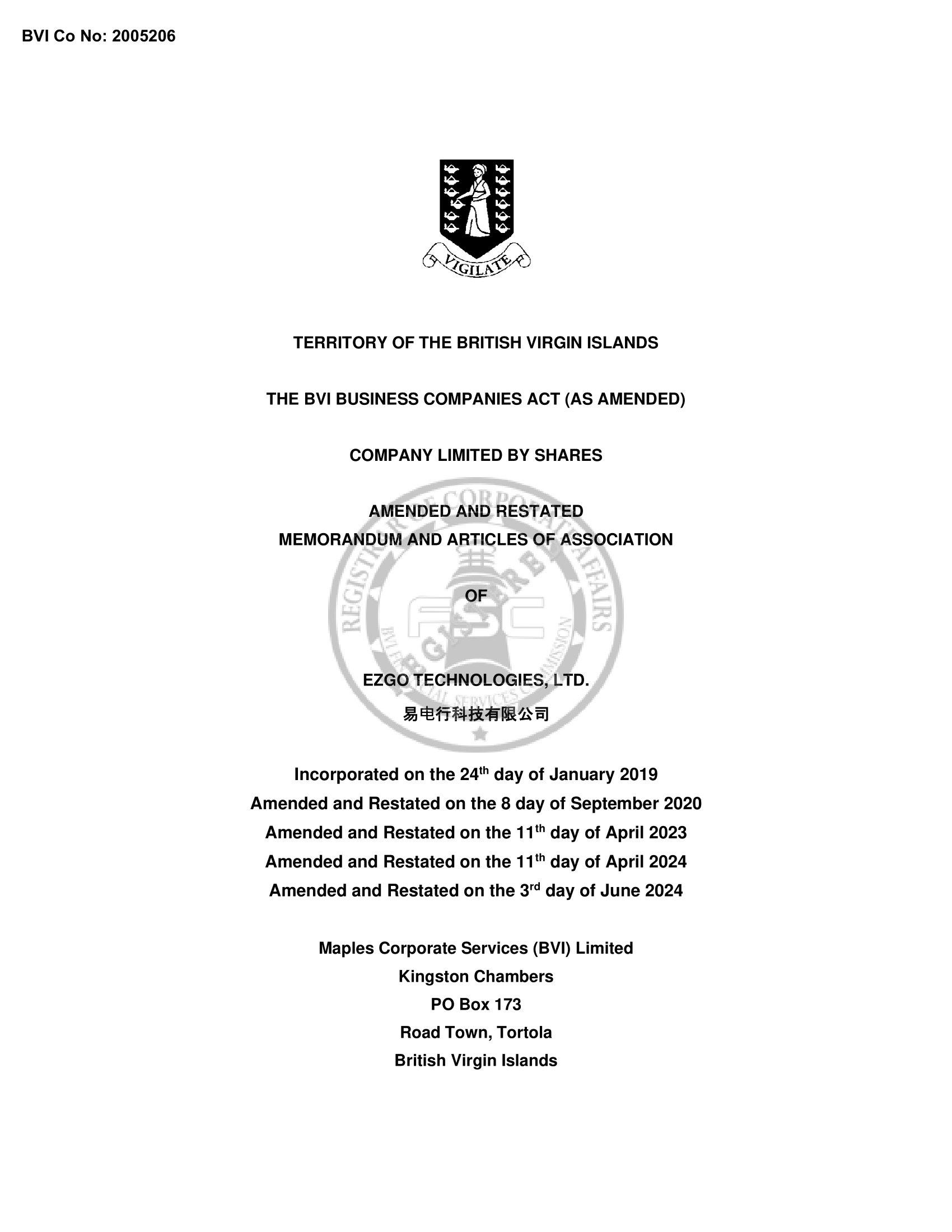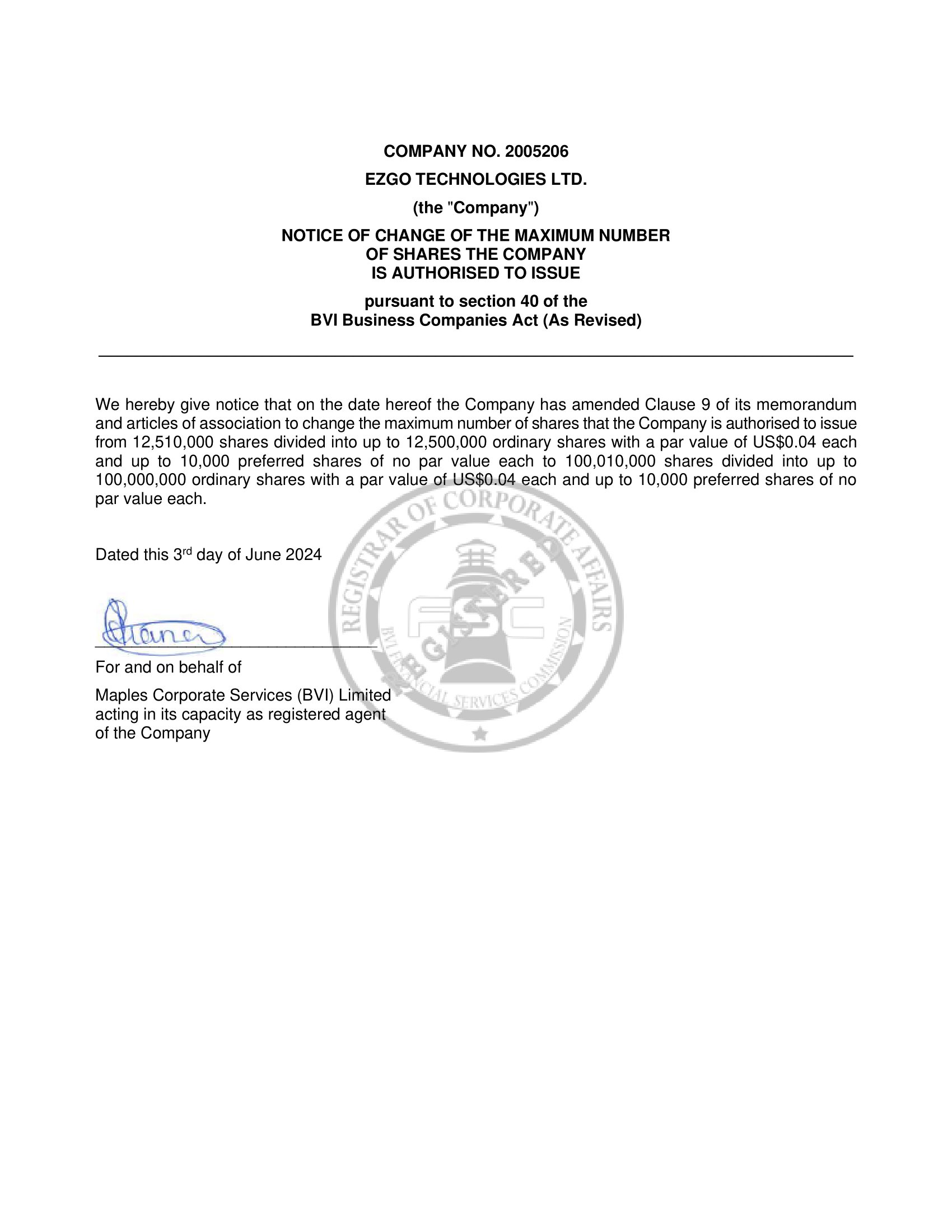 | Date: June 7, 2024 | EZGO Technologies Ltd. | |