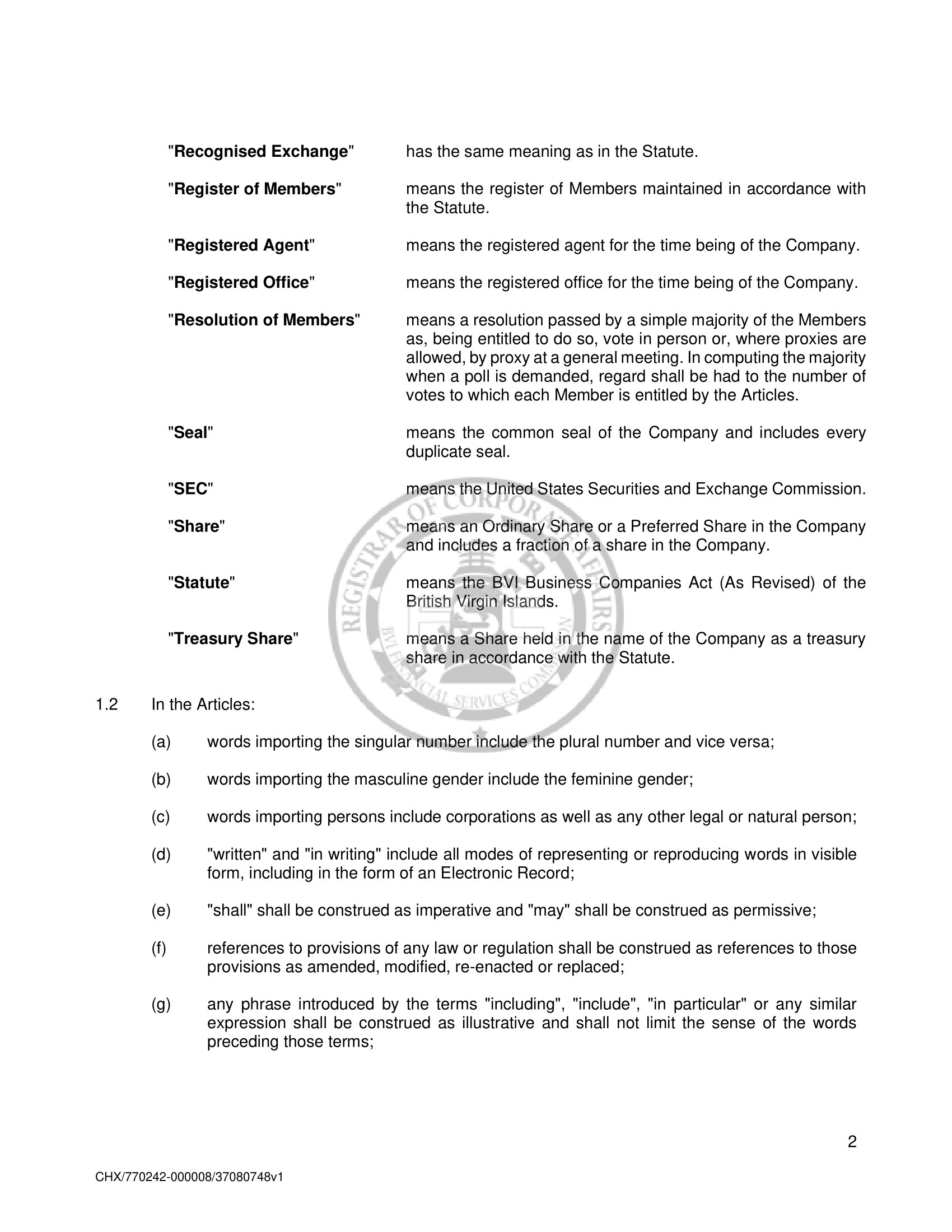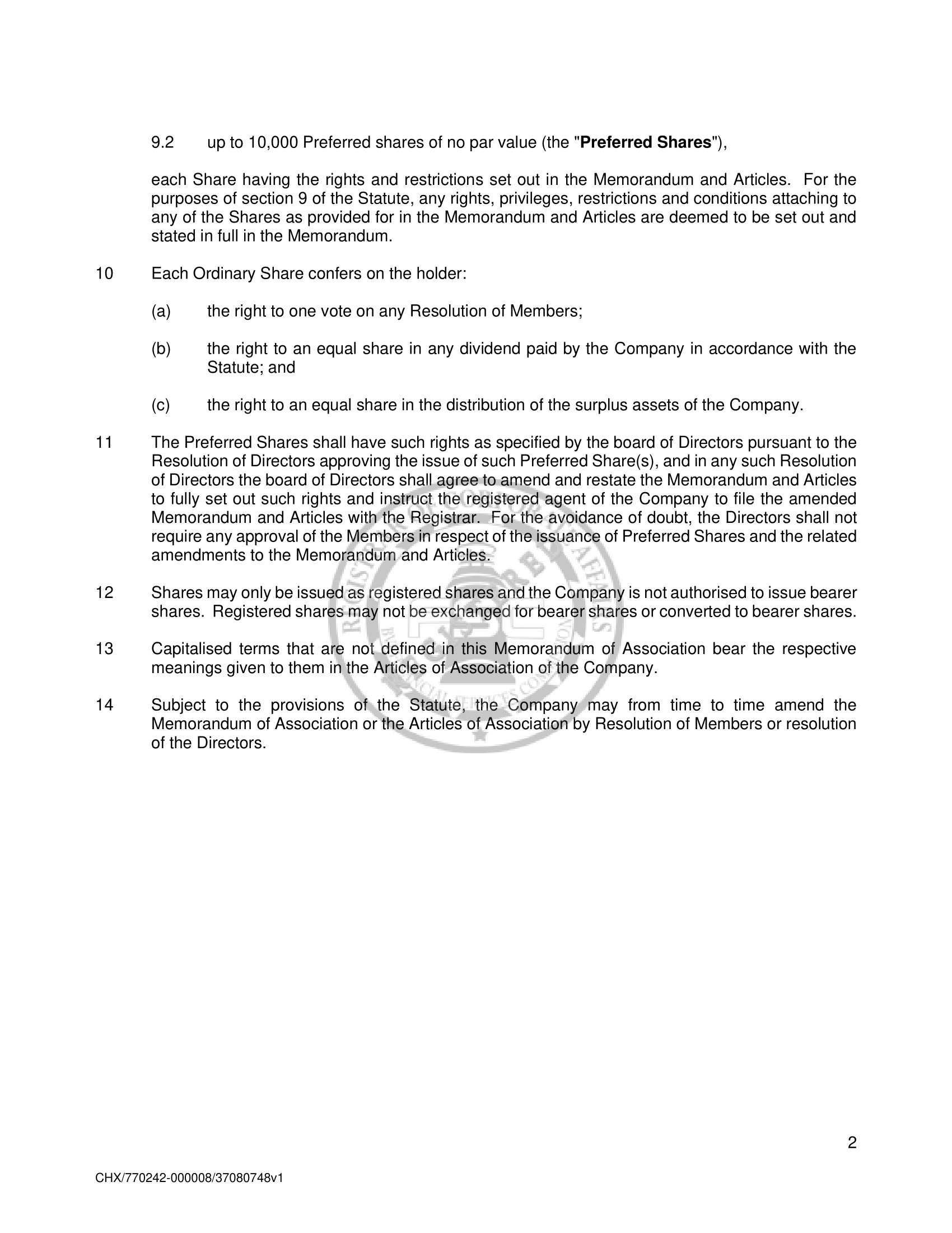 | 99.2 | The Amended and Restated Memorandum and Articles of Association |
