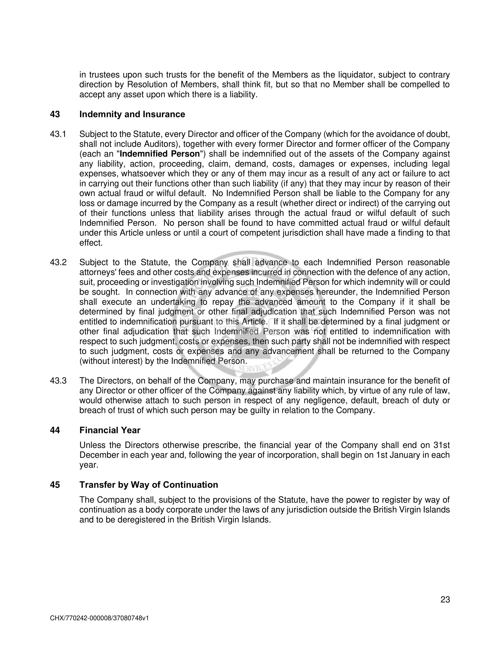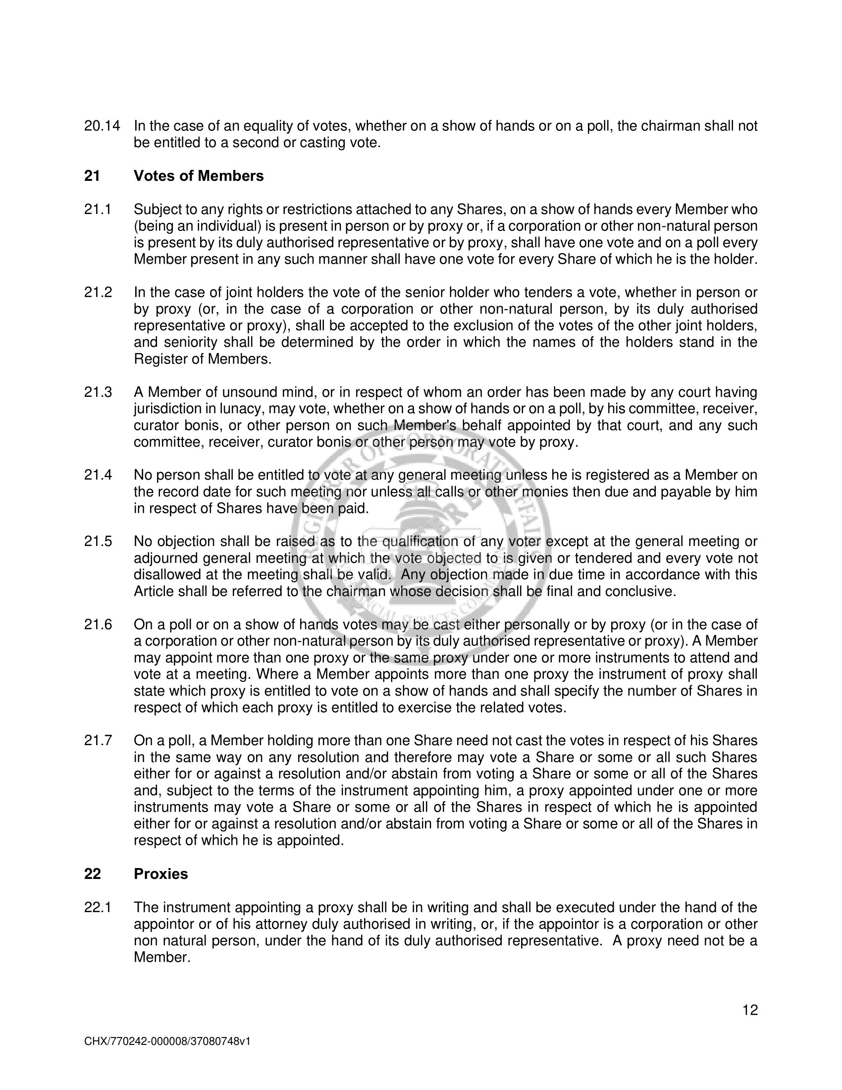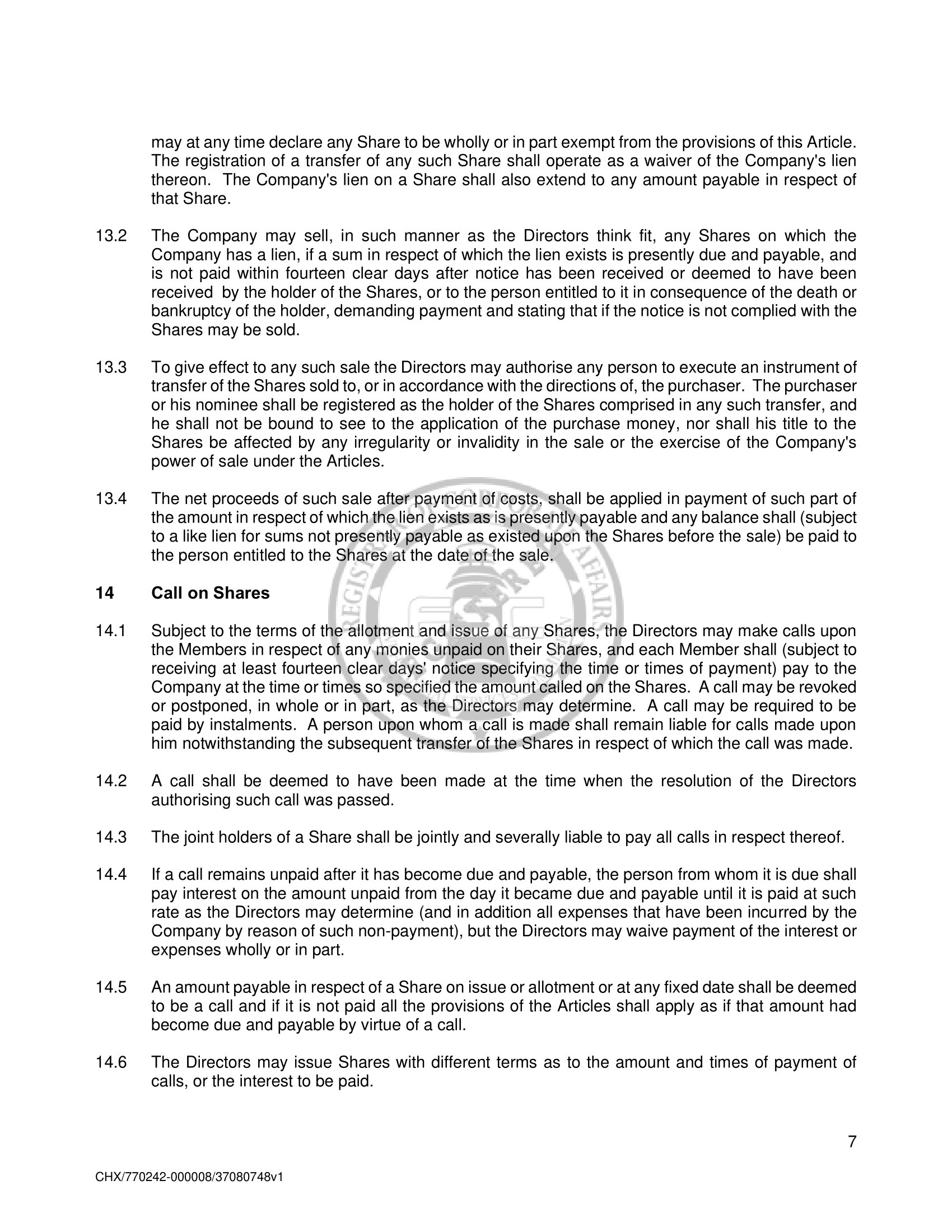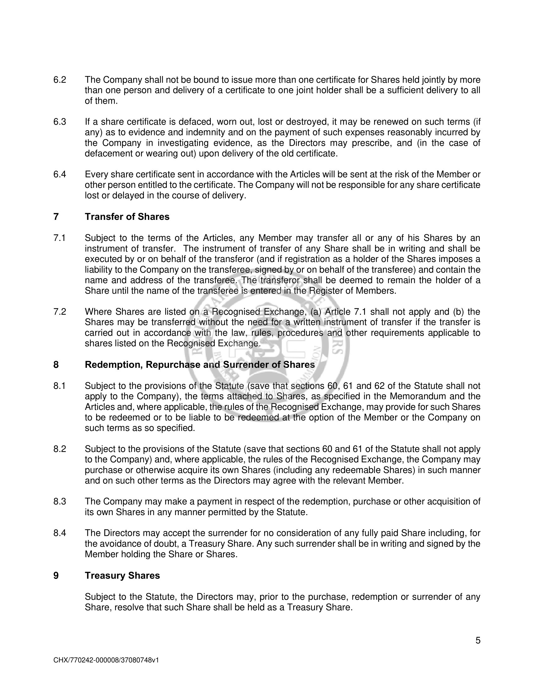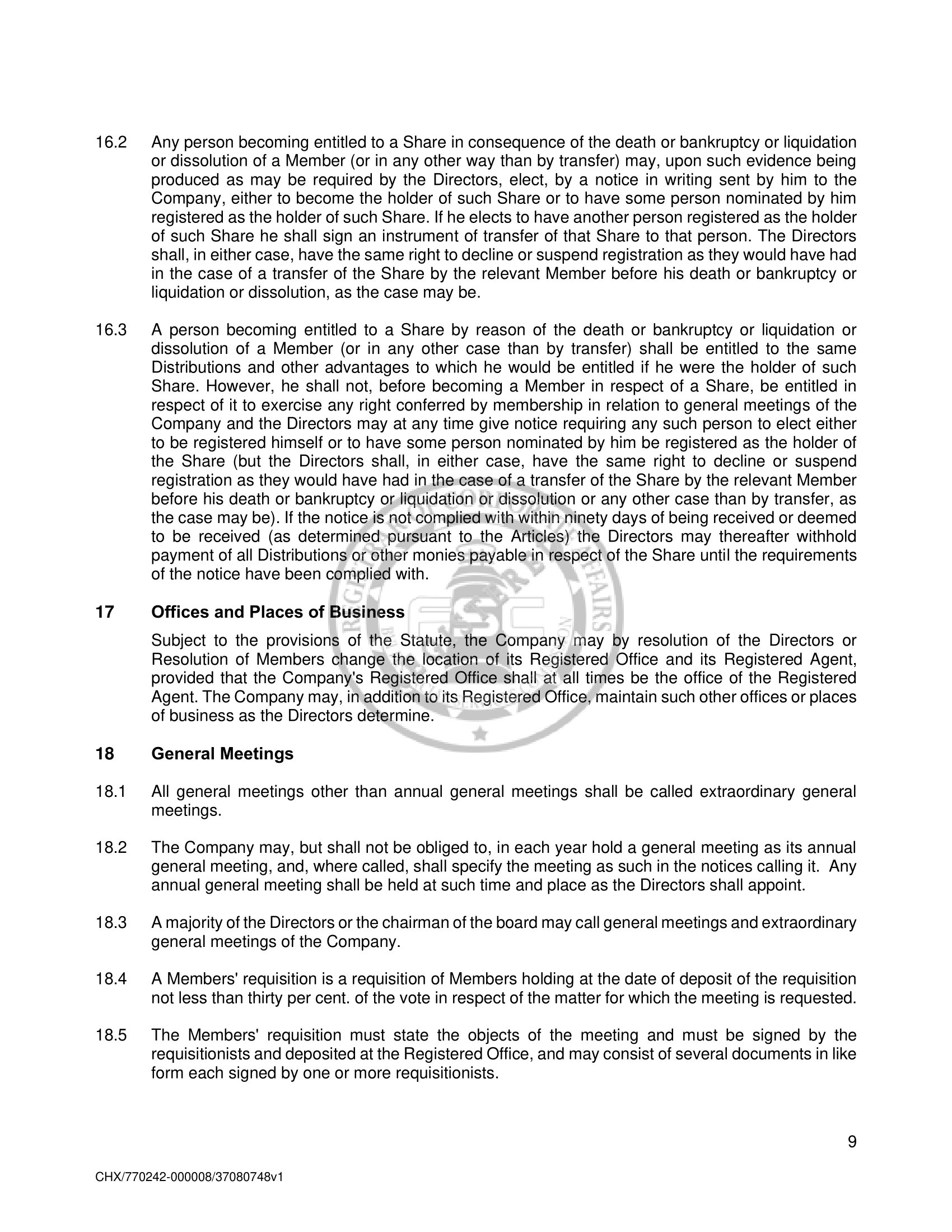 Amended and Restated Memorandum and Articles