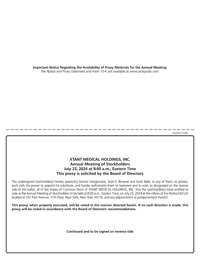Important Notice Regarding the Availability of Proxy Materials for the Annual Meeting to be Held on July 23, 2024: The proxy statement, along with our Annual Report on Form 10-K for the fiscal year ended December 31, 2023 are available at www.xtantmedical.com (click “Investors” and “SEC Filings”).