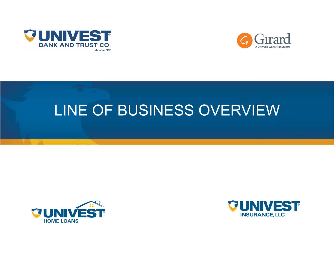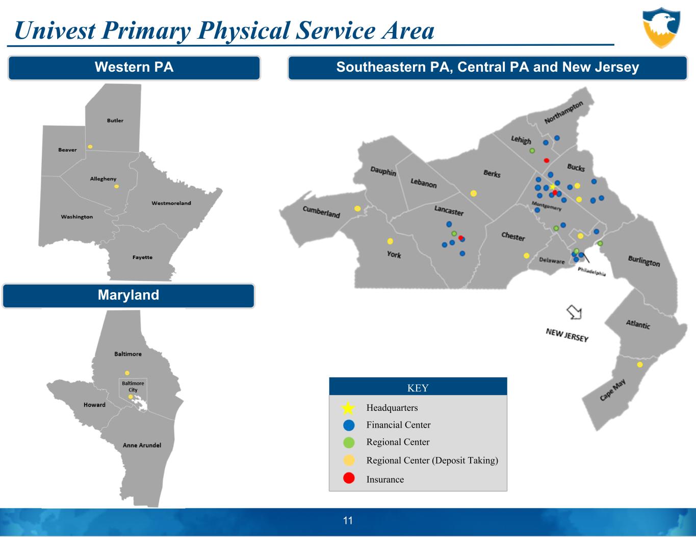 Univest Primary Physical Service Area 11 KEY Headquarters Financial Center Regional Center Regional Center (Deposit Taking) Insurance Western PA Maryland Southeastern PA, Central PA and New Jersey
