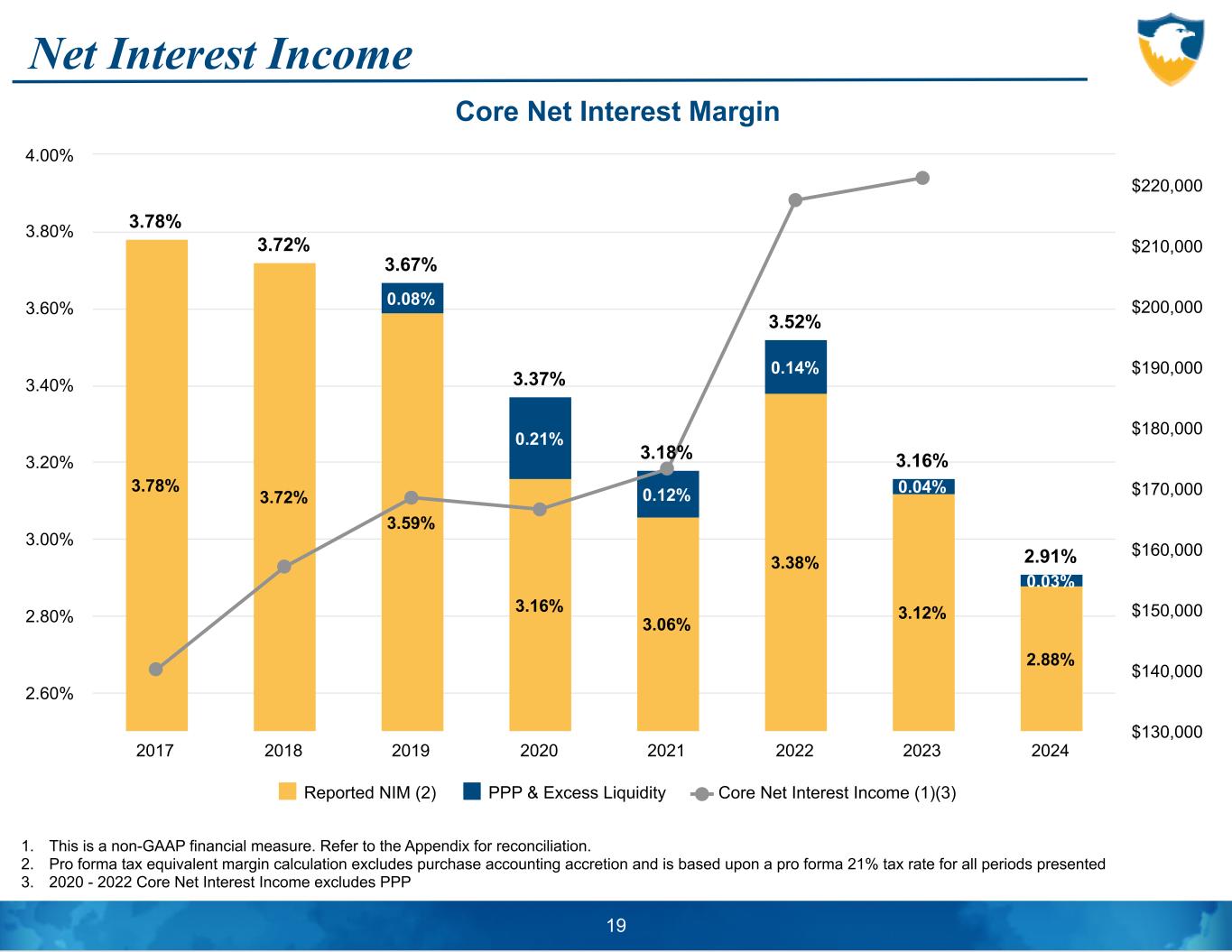 Core PTPP- NCO ROAA & ROTE 1. This is a non-GAAP financial measure. Refer to the Appendix for reconciliation. 1.49% 1.45% 1.63% 1.51% 1.37% 1.56% 1.33% 1.16% 2017 2018 2019 2020 2021 2022 2023 Q1 2024 1.00% 1.10% 1.20% 1.30% 1.40% 1.50% 1.60% 1.70% 1.80% 1.90% 2.00% 19.54% 16.33% 18.20% 17.58% 15.77% 18.53% 16.14% 13.52% 2017 2018 2019 2020 2021 2022 2023 Q1 2024 12.00% 13.00% 14.00% 15.00% 16.00% 17.00% 18.00% 19.00% 20.00% 21.00% 22.00% 18 Core PTPP-NCO ROAA1 Core PTPP-NCO ROTE1