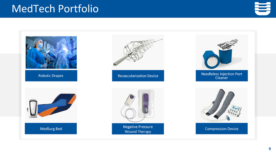 MedTech Portfolio Robotic Drapes Revascularization Device Needleless Injection Port Cleaner MedSurg Bed Negative Pressure Wound Therapy Compression Device 9