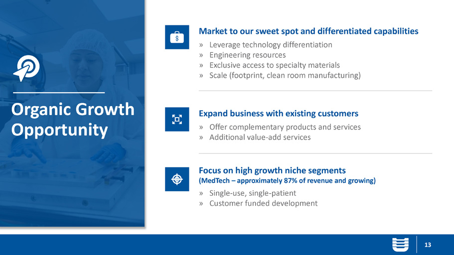 Growth Strategy 12 Internal Growth: Market To Our Sweet Spot Strategic Acquisitions TWO - PRONGED
