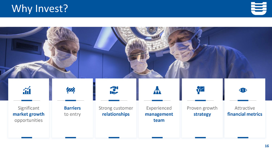 Why Invest? 16 Significant market growth opportunities Barriers to entry Strong customer relationships Experienced management team Proven growth strategy Attractive financial metrics