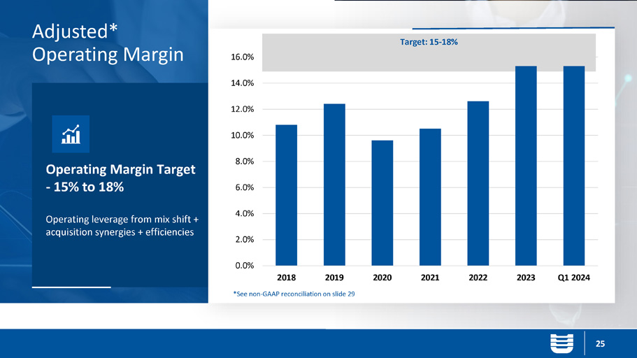 Gross Margin Target – 28% to 31% Operating Leverage from Mix Shift + Acquisition synergies + Efficiencies 24 Gross Profit Margin Target: 28 - 31% 0.0% 5.0% 10.0% 15.0% 20.0% 25.0% 30.0% 2018 2019 2020 2021 2022 2023 Q1 2024
