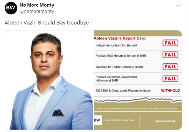 | 1. | Mr. Bennett said Blackwells’ campaign “from the start has been defined by smear tactics and personal attacks.” Mr. Bennett has a pattern of smearing and suing shareholders who bring attention to his shady external advisory agreement with Ashford Inc. (or otherwise call out his unique skillsets), including the smear tactics and personal attacks against Blackwells in a series of articles published in a ‘newspaper’ he controls, in a manner we believe violates securities laws. |