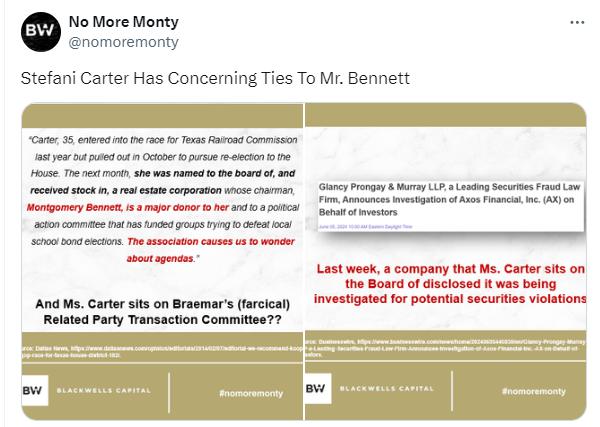The Corporation’s board of directors has purported to reject as invalid our nominations to elect each of Blackwells’ nominees and determined that our notice is purportedly non-compliant with the Corporation’s Fifth Amended and Restated Bylaws, as amended (the “Bylaws”) and defective. On March 24, 2024, the Corporation brought suit against each of the Participants, Blackwells Holding Co. LLC, Vandewater Capital Holdings, LLC, Blackwells Asset Management LLC and BW Coinvest Management I LLC in the United States District Court for the Northern District of Texas (the “District Court”), seeking injunctive relief against solicitation of proxies by Blackwells and a declaratory judgment that Blackwells’ nomination is invalid due to Blackwells’ alleged violations of the Bylaws, and, as a result, Blackwells’ slate of purported nominees is invalid and ineligible to stand for election by the Corporation’s stockholders. Ultimately, Blackwells believes the Corporation’s claims have no merit. On April 11, 2024, Blackwells filed a Complaint in the District Court against the Corporation and the Corporation’s directors. Blackwells alleges, among other things, that the Corporation improperly rejected Blackwells’ nomination notice, breached the Bylaws, and violated Section 14(a) of the Securities Exchange Act of 1934 by issuing false and misleading statements and failing to disclose The Dallas Express as a proxy participant. The action filed by the Corporation on March 24, 2024 and the action filed by Blackwells on April 11, 2024 have been consolidated (the “Consolidated Litigation”). The Consolidated Litigation is currently stayed. The outcome of the Consolidated Litigation and any related litigation may affect our ability to deliver proxies submitted to us on the WHITE universal proxy card.