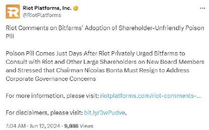 On June 12, 2024, Riot Platforms, Inc. published the following posts on X (formerly known as Twitter) and LinkedIn: