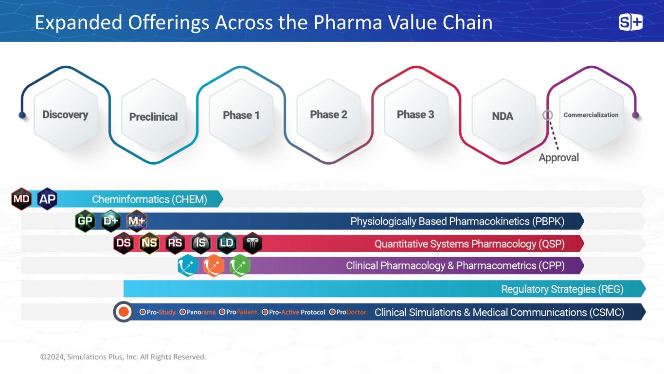 ©2024, Simulations Plus, Inc. All Rights Reserved. Expanded Offerings Across the Pharma Value Chain