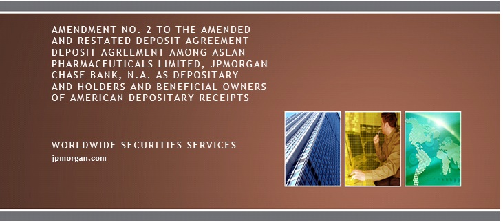Form of Deposit Agreement. Form of Amended and Restated Deposit Agreement among ASLAN Pharmaceuticals Limited, JPMorgan Chase Bank, N.A., as depositary (the “Depositary”), and all Holders and Beneficial Owners from time to time of ADRs issued thereunder. Previously filed as Exhibit (a) to Form F-6 (333-248632) filed with the Securities and Exchange Commission, which is incorporated herein by reference. | |