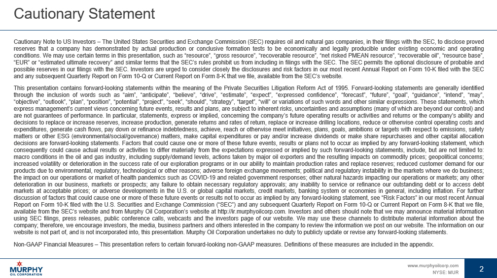 1 www.murphyoilcorp.com NYSE: MUR 1 INVESTOR UPDATE JUNE 2024