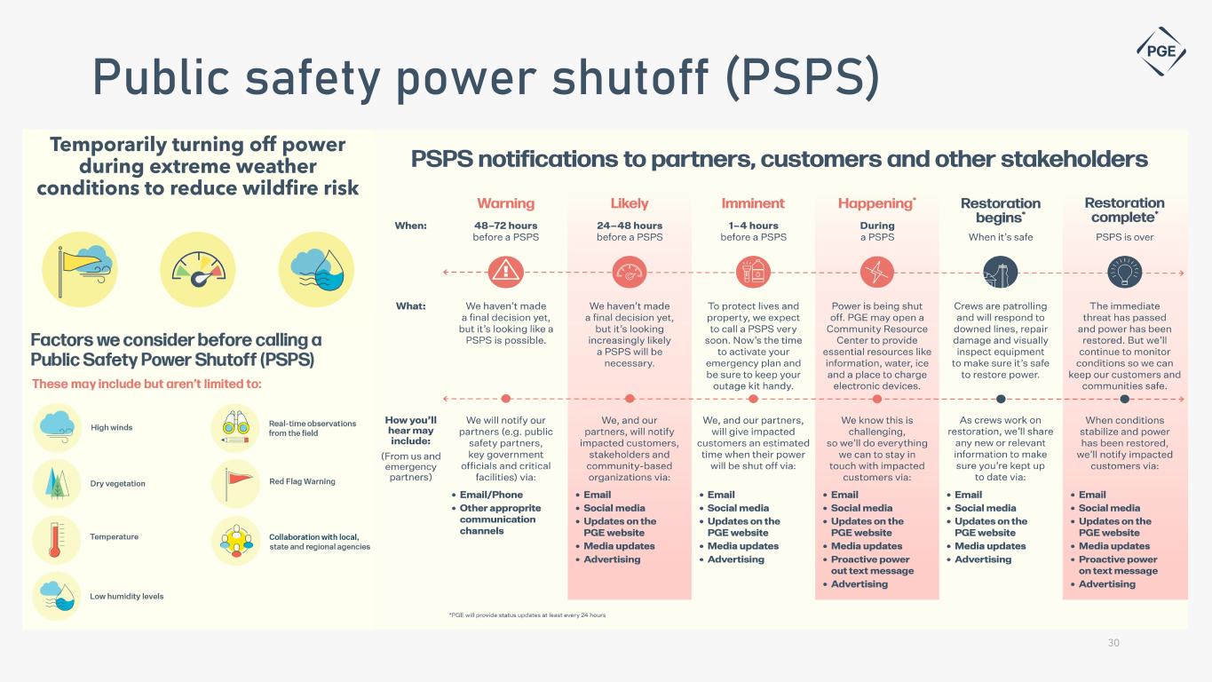 Temporarily turning off power during extreme weather conditions to reduce wildfire risk Public safety power shutoff (PSPS) 30