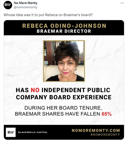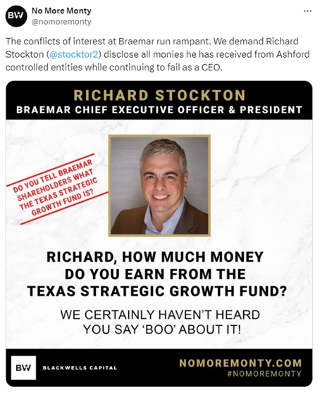 Blackwells, Blackwells Onshore I LLC, Jason Aintabi, Michael Cricenti, Jennifer M. Hill, Betsy L. McCoy and Steven J. Pully (collectively, the “Participants”) are participants in the solicitation of proxies from the stockholders of Braemar Hotels & Resorts Inc. (the “Corporation”) for the Corporation’s 2024 annual meeting of stockholders. On April 3, 2024, the Participants filed with the Securities and Exchange Commission (the “SEC”) their definitive proxy statement and accompanying WHITE universal proxy card in connection with their solicitation of proxies from the stockholders of the Corporation.