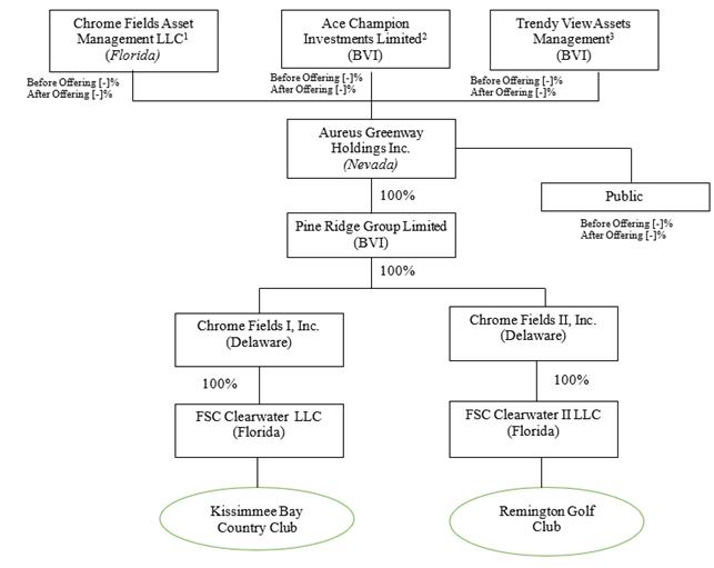 The shares of common stock offered in this prospectus are shares of Aureus Greenway Holdings Inc., a Nevada holding company, which has no material operations of its own and conducts substantially all of its operations through its operating entities in the United States. For a description of our corporate structure, see “Corporate History and Structure” beginning on page 60. Our corporate structure involves unique risks to investors. See “Risk Factors – Risks Related to Our Corporate Structure”.