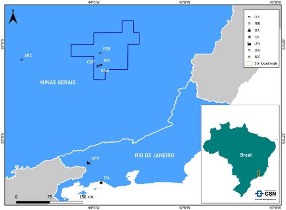 To complement its iron ore mining properties, CSN Mineração runs the Itaguaí Port, located in the municipality of Itaguaí, state of Rio de Janeiro, and the Presidente Vargas Steel Plant, in the municipality of Volta Redonda, also in the state of Rio de Janeiro.