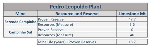 | Fazenda Campinho | Pedro Leopoldo, MG | 100 | CSN Cimentos Brasil | 661.4 | Production | Yes | (2) | Open Pit / Limestone | Fazenda Campinho Mining Facilities |