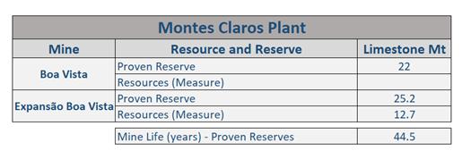 | Boa Vista | Montes Claros, MG | 100 | CSN Cimentos Brasil | 432.9 | Production | Yes | (2) | Open Pit / Limestone | Boa Vista Mining Facilities |