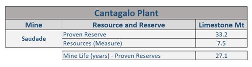 | Saudade | Cantagalo, RJ | 100 | CSN Cimentos Brasil | 514.6 | Production | Yes | (2) | Open Pit / Limestone | Saudade Mining Facilities |
