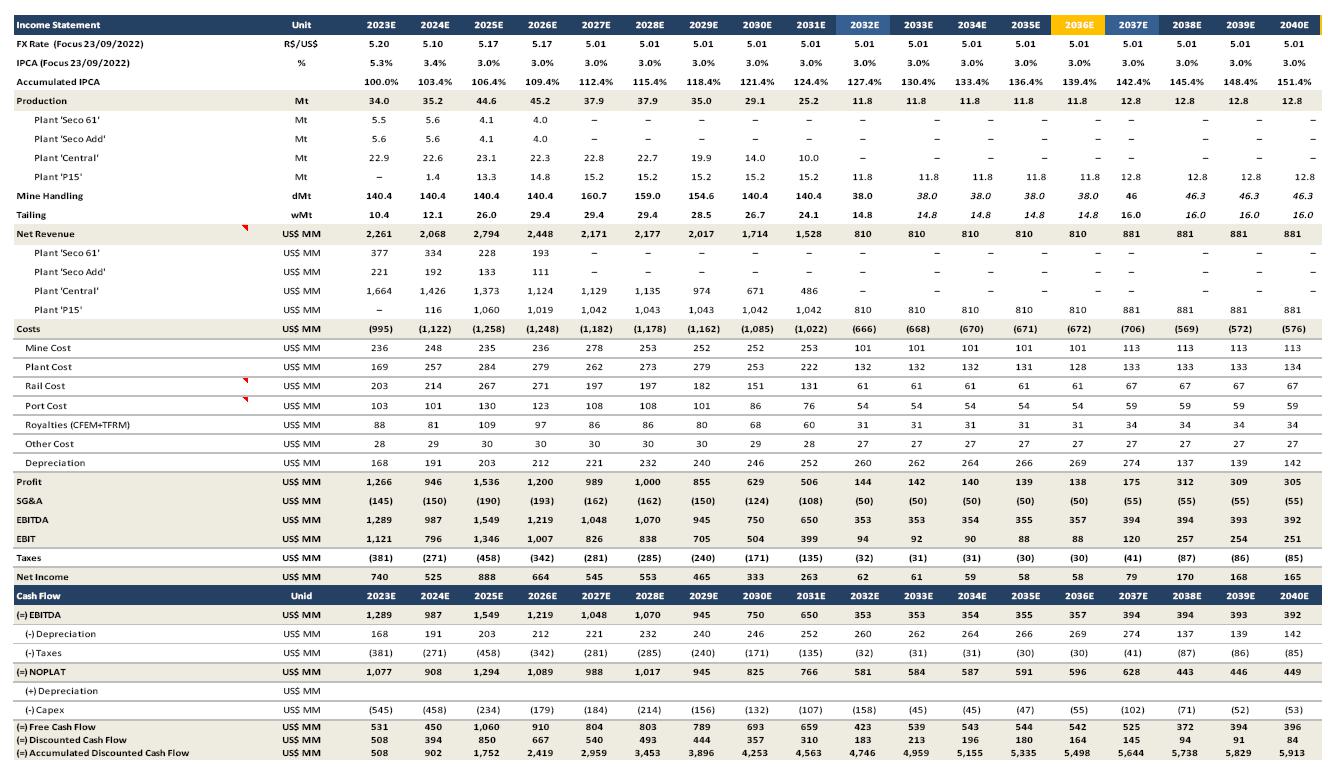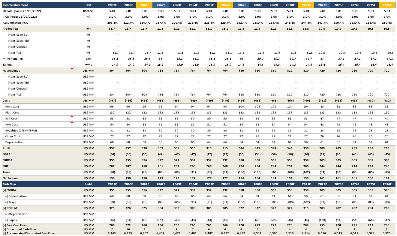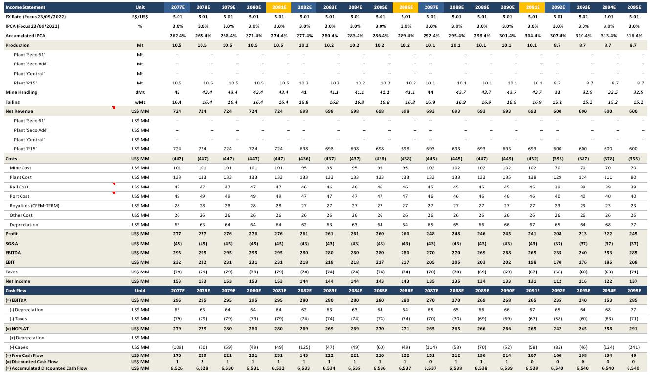 The cash flow model demonstrates that under the current set of economic assumptions the Casa de Pedra project provides a robust positive post-tax net present value of US$6,540 million at a 9.26% annual discount and confirms the economic viability of the mineral reserves estimates.