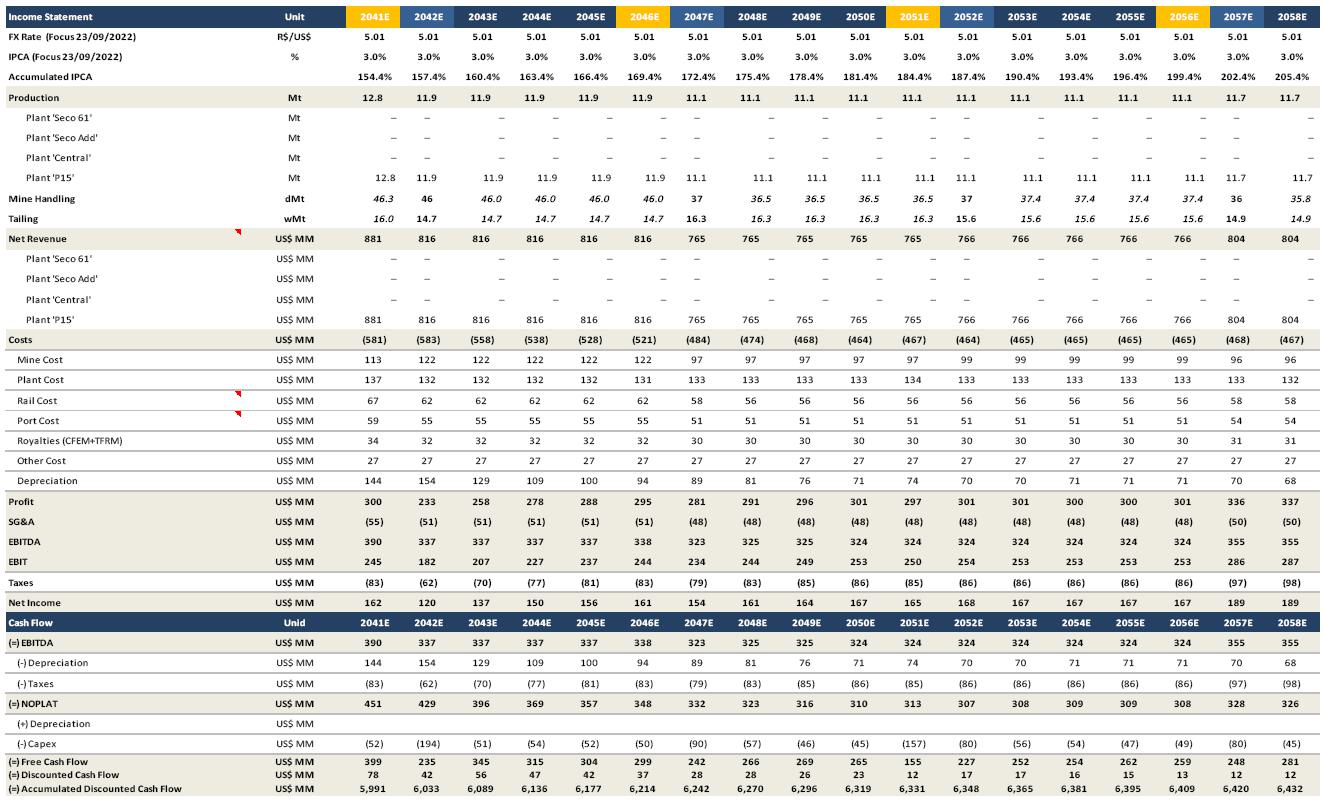 The overall economics for the project’s reserves have been evaluated by CSN using conventional discounted cash flow methods. The production schedules, capital expenditures and operating costs have been previously informed in the Company’s response letter dated January 8, 2024.