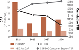 At Brown-Forman, we stand by our ambition: “Nothing Better in the Market.” To deliver that level of value for our stockholders, we need to attract, motivate, reward, and retain a talented and diverse team of executives prepared to lead those efforts. We believe that our executive compensation program, described in this Proxy Statement, allows us to do just that by linking executive pay to our company’s performance, both during the most recent fiscal year and over time.