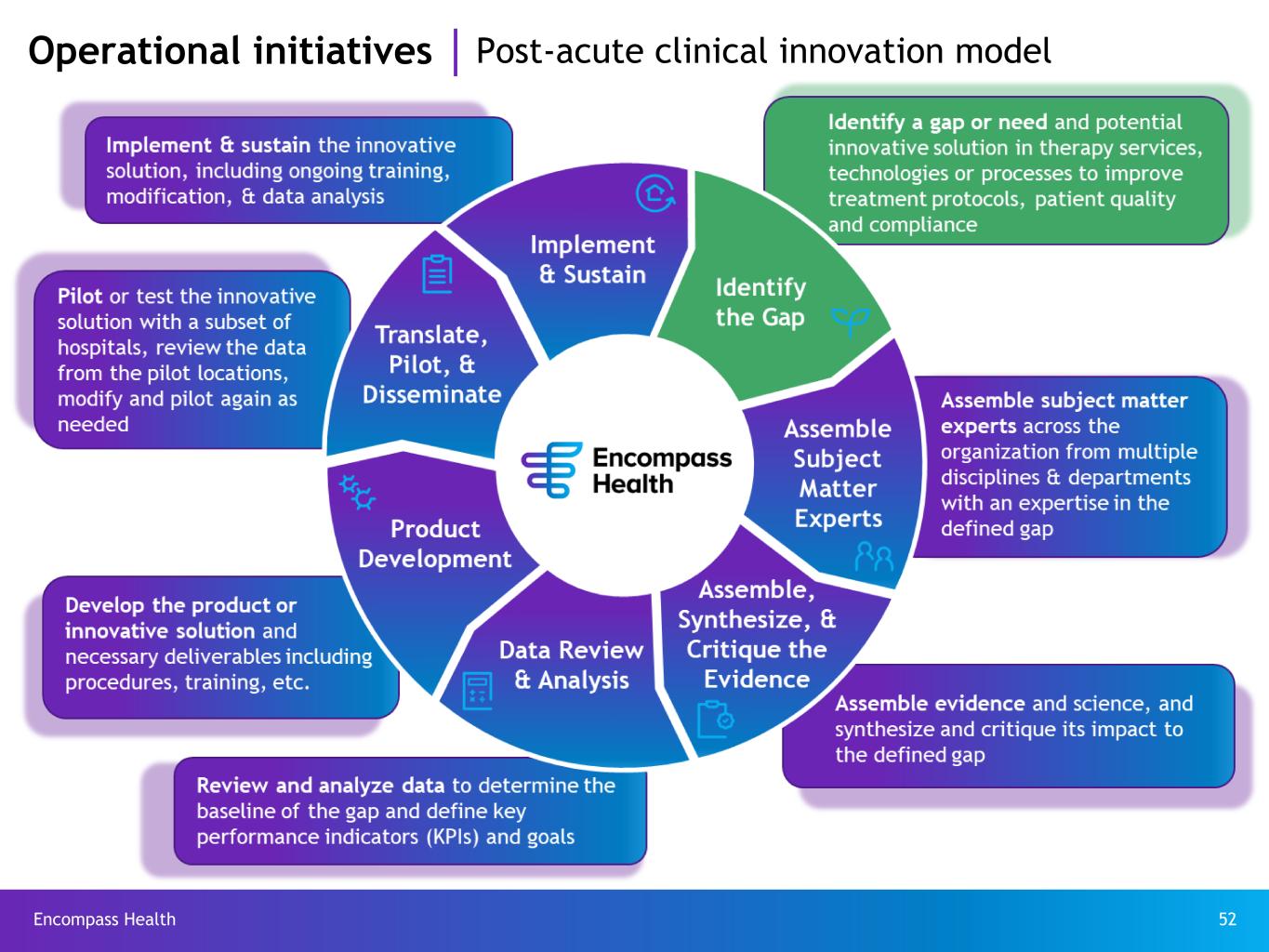 Encompass Health 52 Operational initiatives Post-acute clinical innovation model