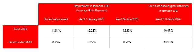 As of 31 March 2024, the structure of own funds and eligible liabilities of the Resolution Group meets the requirements of Total MREL and Subordinated MREL5.