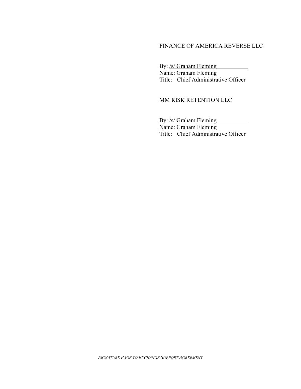 SIGNATURE PAGE TO EXCHANGE SUPPORT AGREEMENT FINANCE OF AMERICA REVERSE LLC By: /s/ Graham Fleming Name: Graham Fleming Title: Chief Administrative Officer MM RISK RETENTION LLC By: /s/ Graham Fleming Name: Graham Fleming Title: Chief Administrative Officer