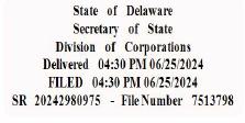 | You may verify this certificate online at corp.delaware.gov/authver.shtml | ||