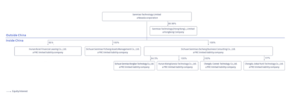 | ● | “Corenel” refers to Chengdu Corenel Technology Limited, a PRC limited liability company and wholly owned subsidiary of Senmiao Consulting; |