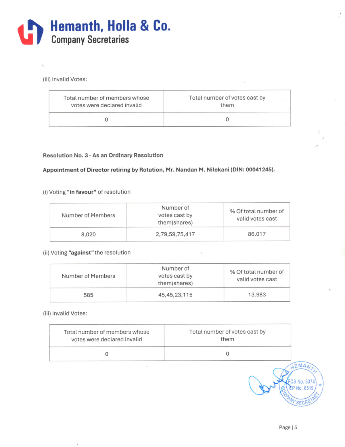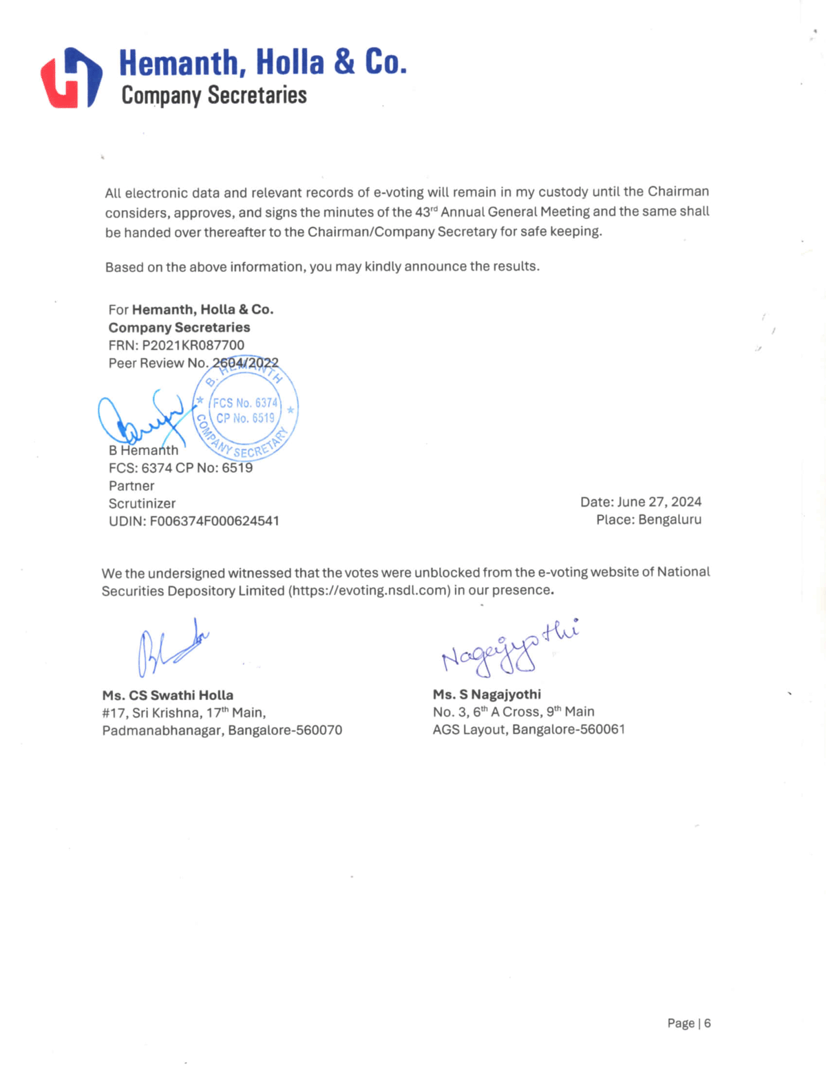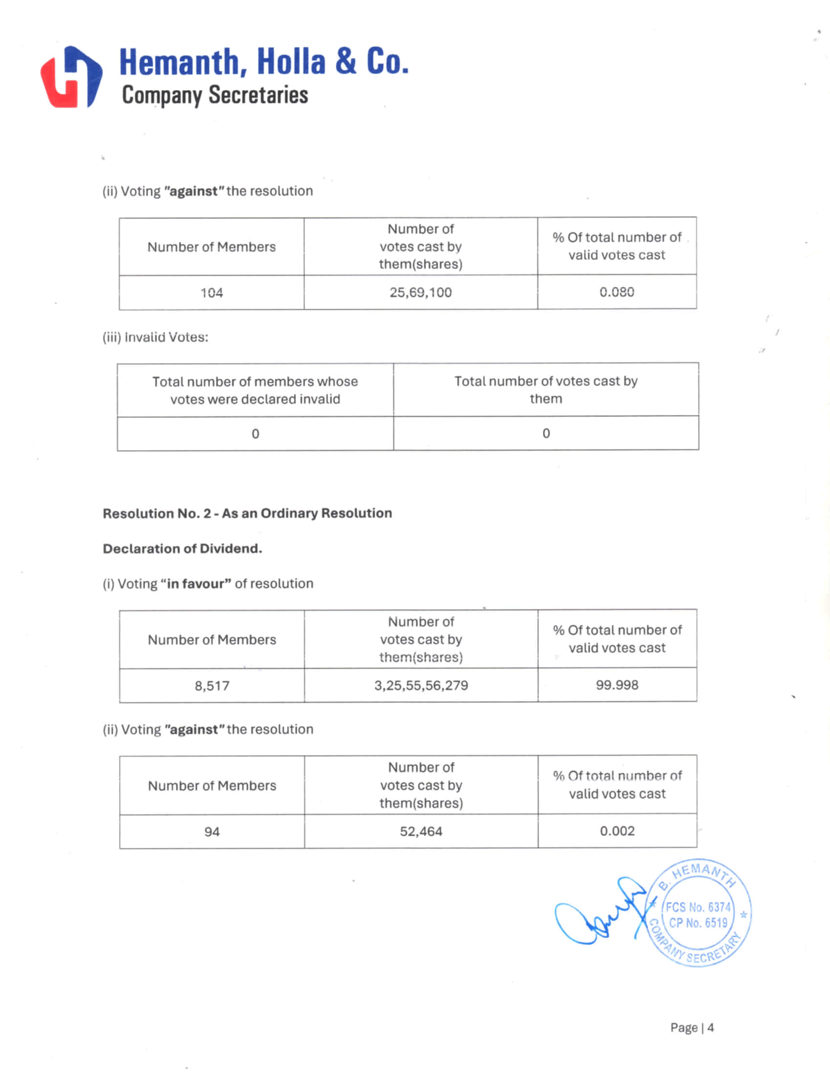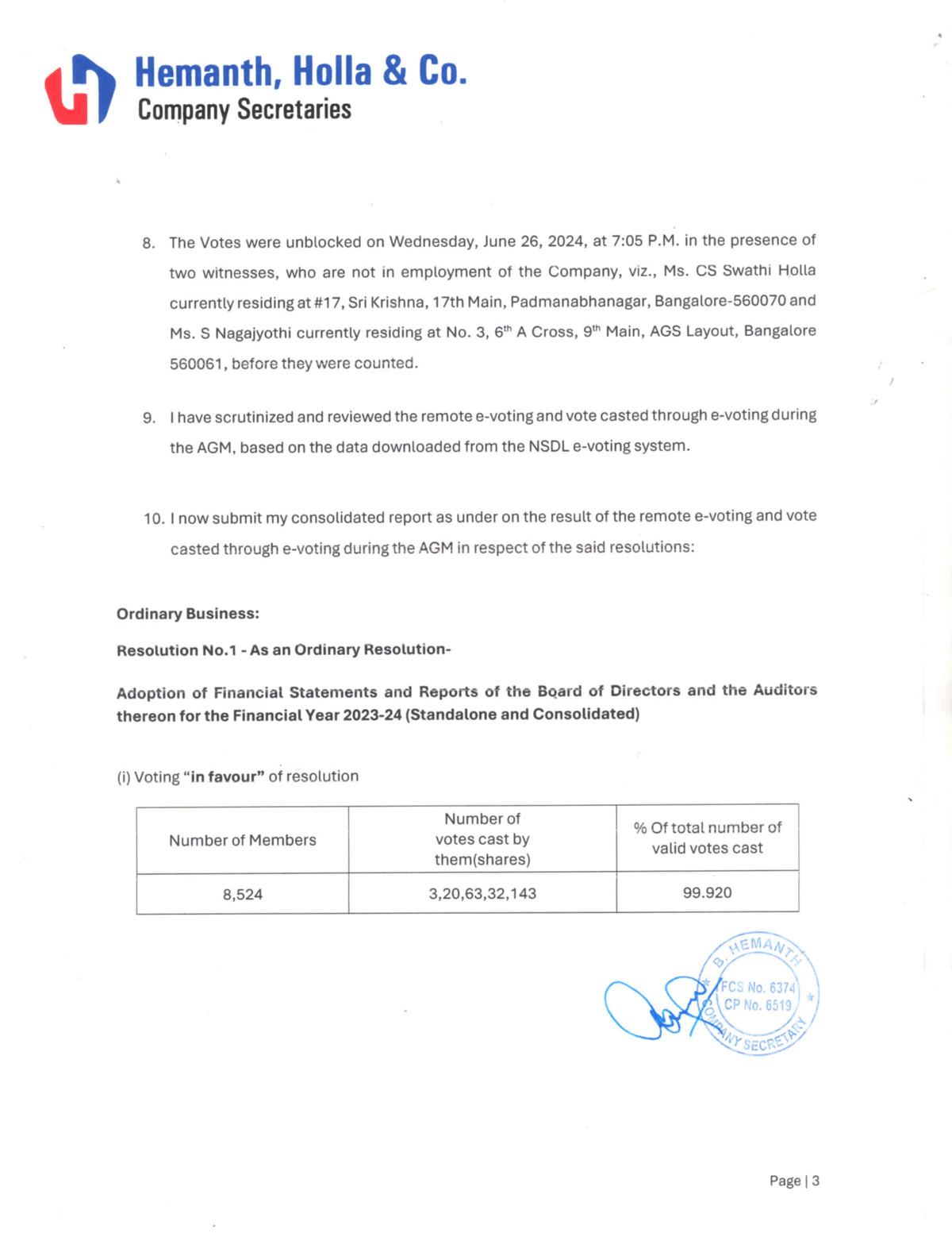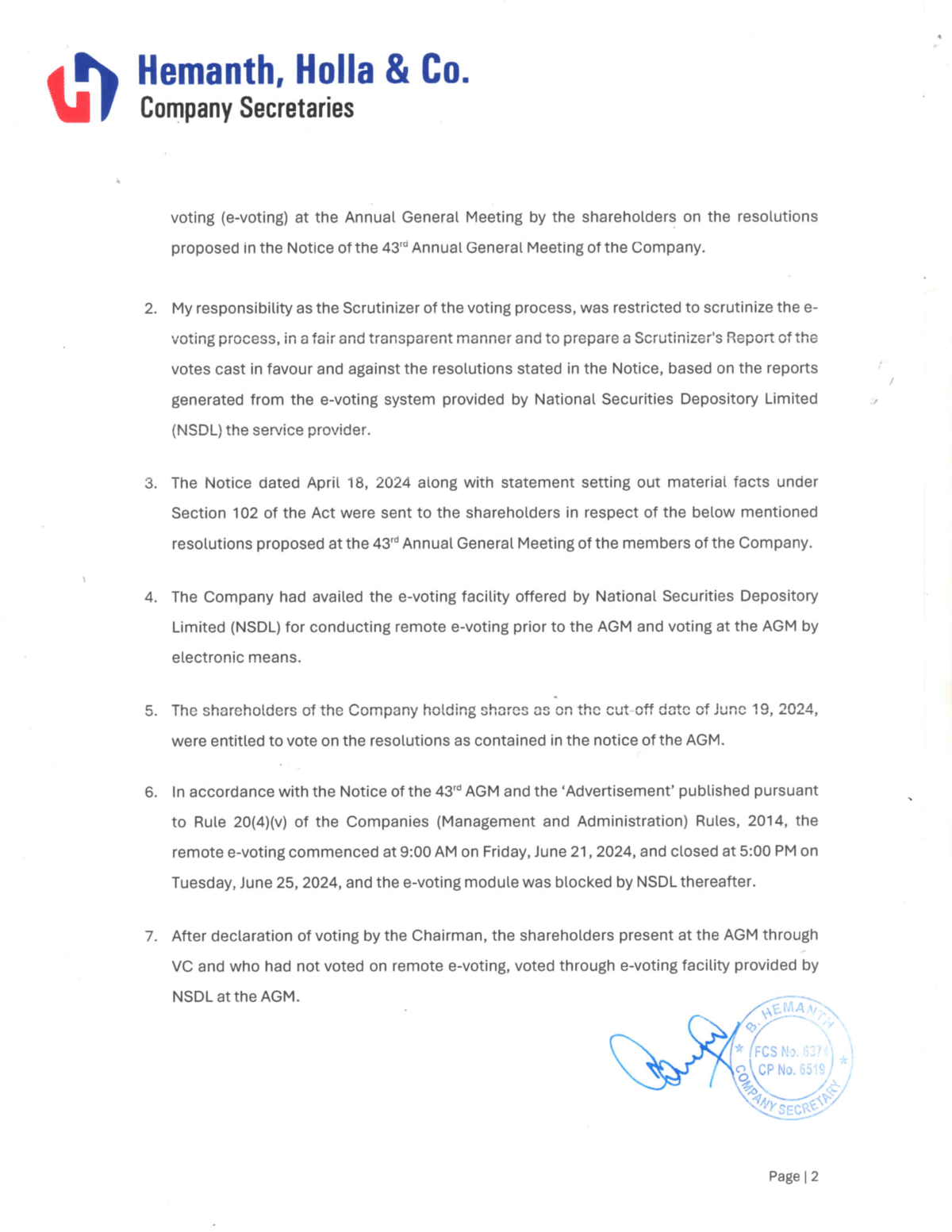 | 99.2 | E-voting results and the Scrutinizer's report. |