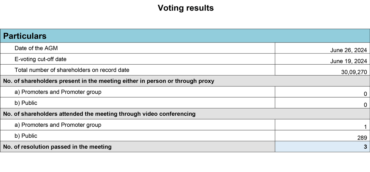 The outcome of the AGM includes the brief proceedings, Chairman's speech, CEO's Presentation, e-voting results and the scrutinizer's report.